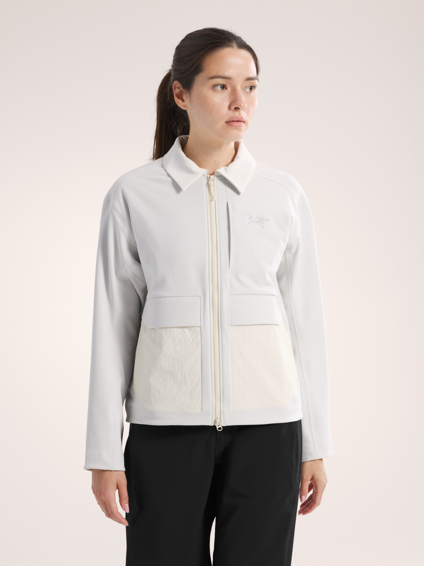 - Contrast: Recycled nylon/spandex plain weave with FC0 DWR, 126gsm - 95% Nylon, 5% Elastane