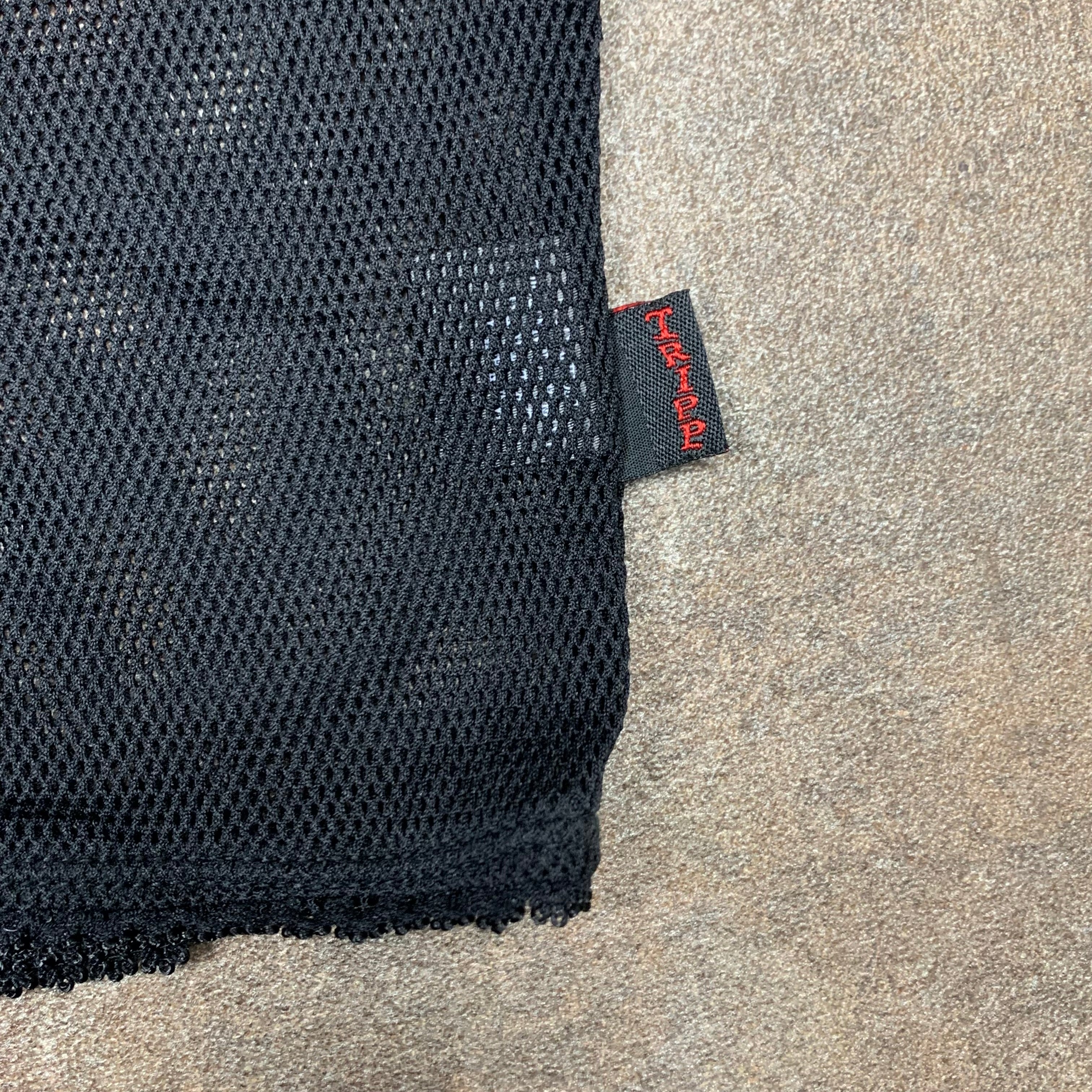 Rare Tripp fishnet top with a branded tab on the side of the torso, coloured black all over and in excellent second hand condition with little to no wear.