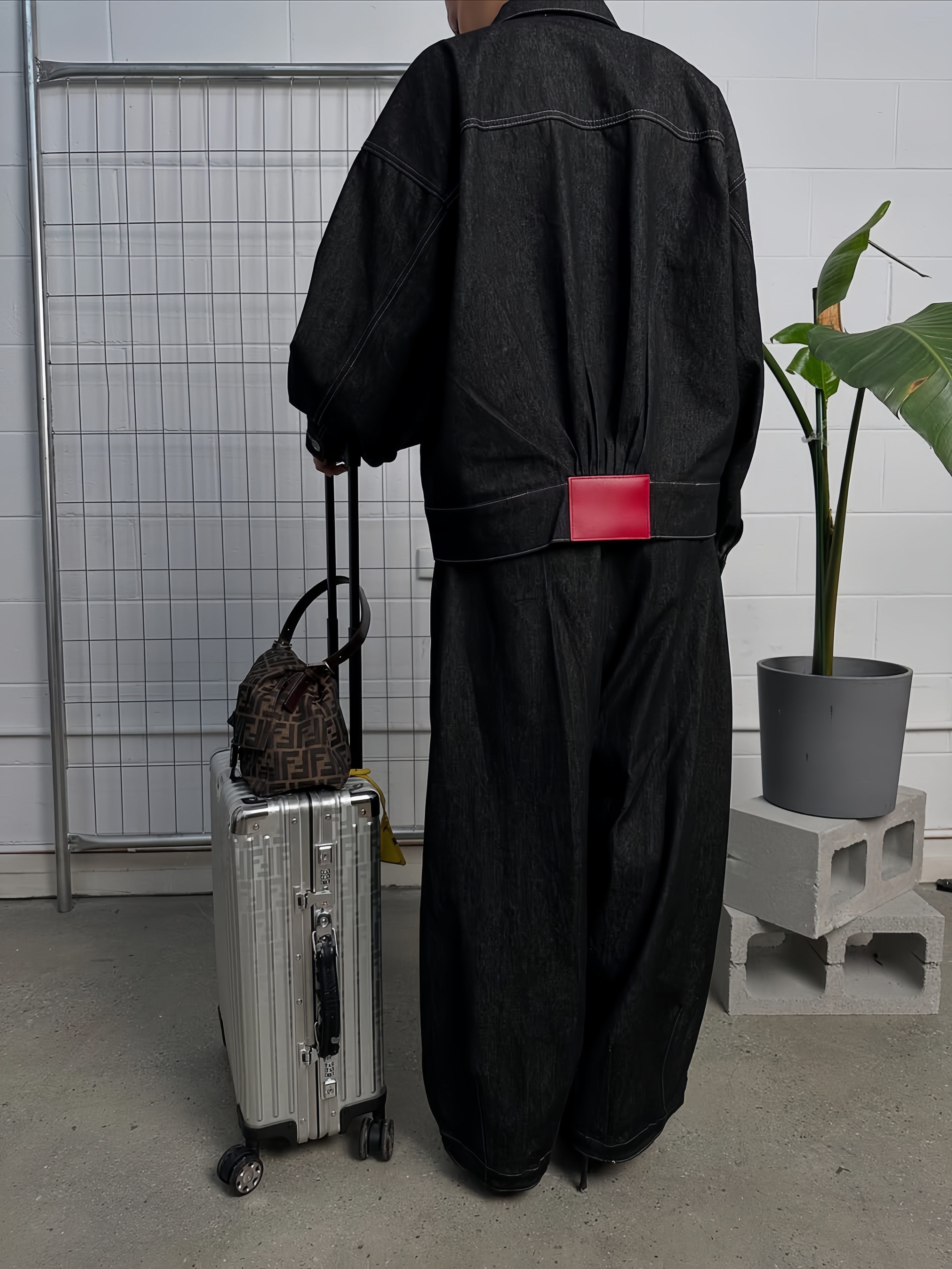 - draping on the back converging to the leather patch