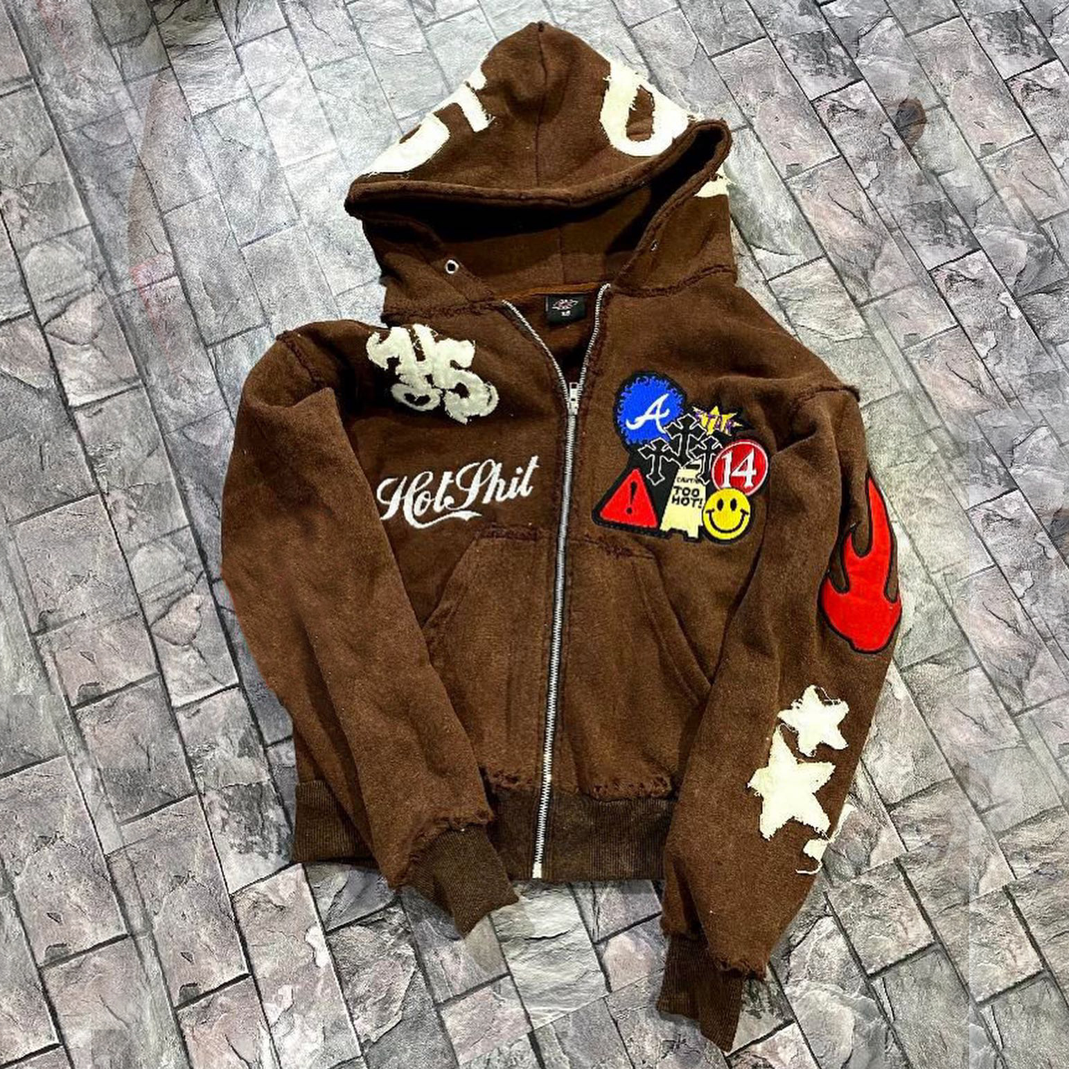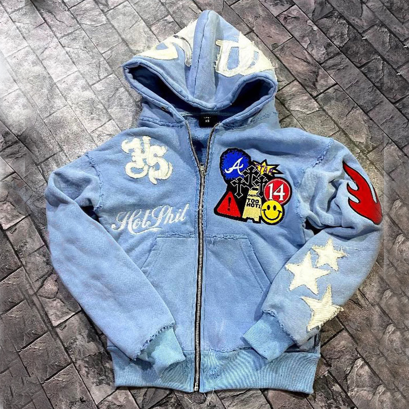 Personalized retro patchwork zipper sweatshirt