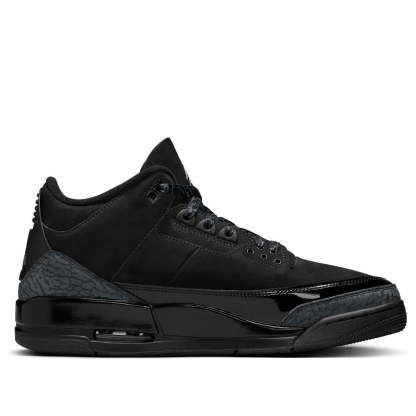 The Air Jordan 3 "Black Cat" returns in Spring 2025! This iconic 2007 design, inspired by Michael Jordan's nickname, features a sleek black and dark charcoal nubuck upper, elephant print, and patent leather overlays. A black sole with white Jordan branding completes the look.