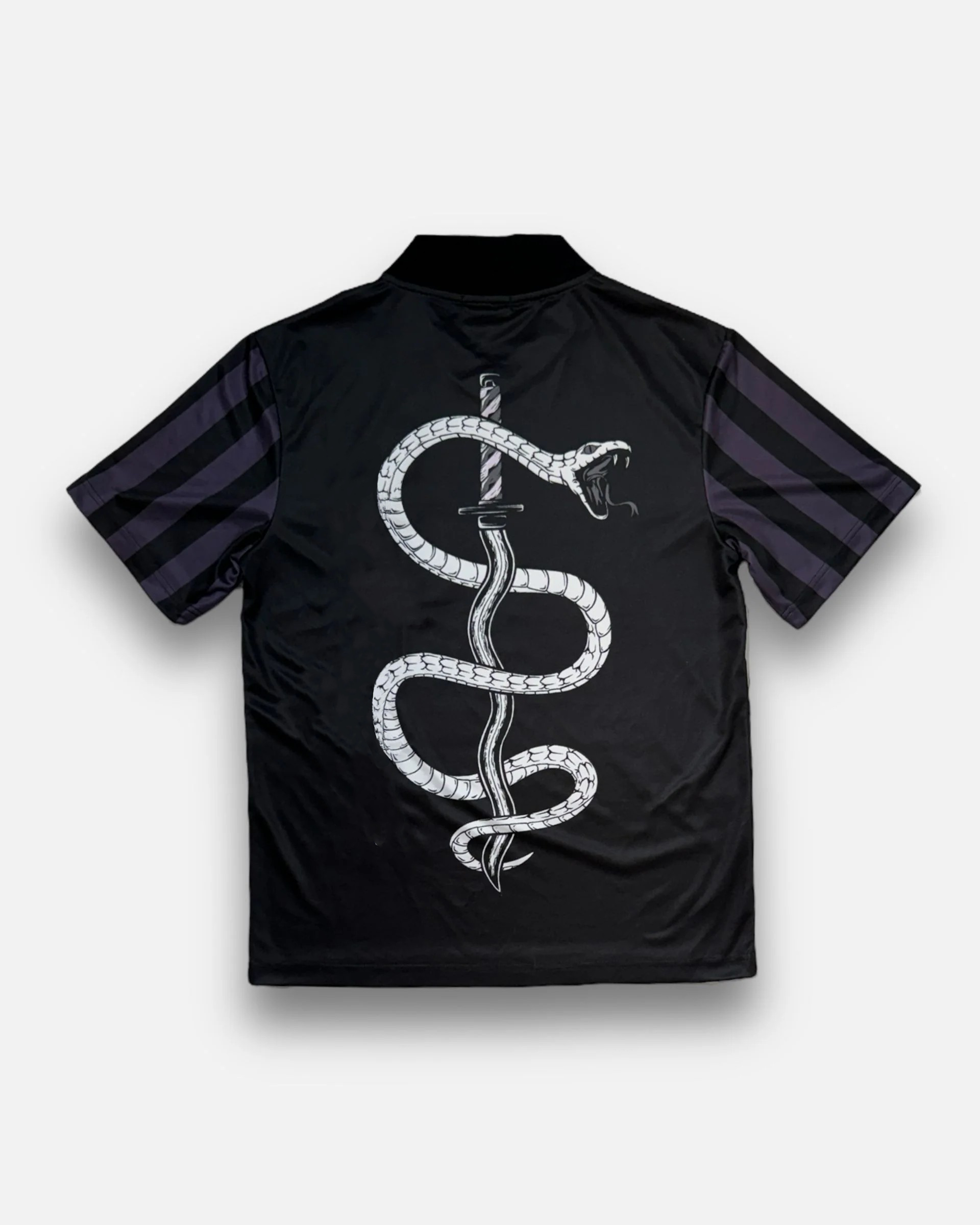 Serpent Sword Jersey with a true-to-size fit, made from medium-weight polyester. Design includes a graphic pattern print with embroidery patch on the front.