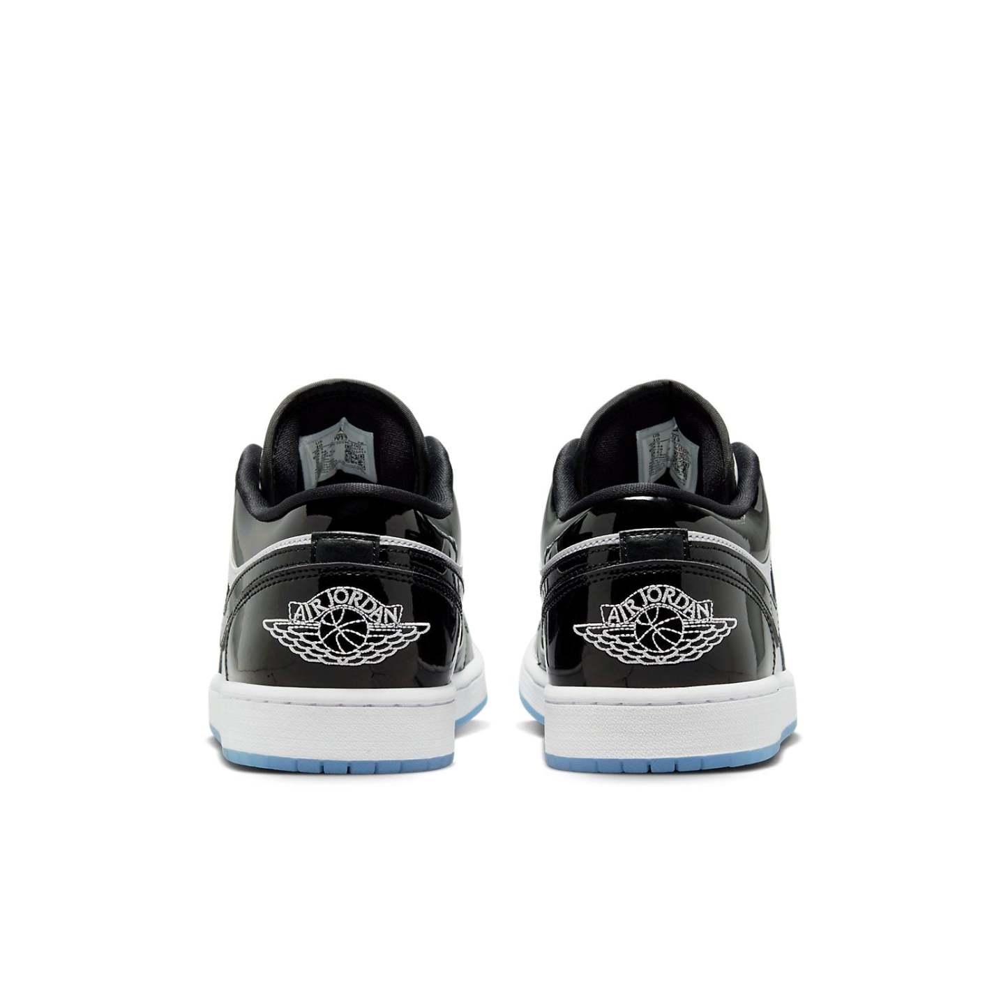 The Air Jordan 1 Low SE Concord utilizes classic design elements in a modernized look. Featuring a combination of black patent leather and white leather uppers, this stylish sneaker is further detailed with the addition of a translucent blue outsole and a white Air Jordan Wings logo placed on the heel. With these sleek upgrades, this timeless classic will have everyone talking. Whether you're a longtime Air Jordan fan or just getting into sneakers, be sure to add this specially edition sneaker to your collection today.