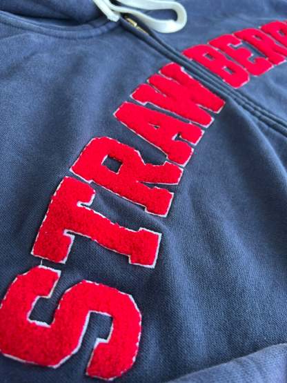 Bold design meets comfort in the Death & Strawberries Hoodie. Made from heavyweight 500 GSM French terry in navy blue, it features a cropped, Slightly boxy fit that stands out. A detailed DTG-printed embroidered patch on the back brings character to life, while chenille embroidery on the front adds a premium touch. Perfect for layering or solo wear, this hoodie is more than clothing—it’s an expression.