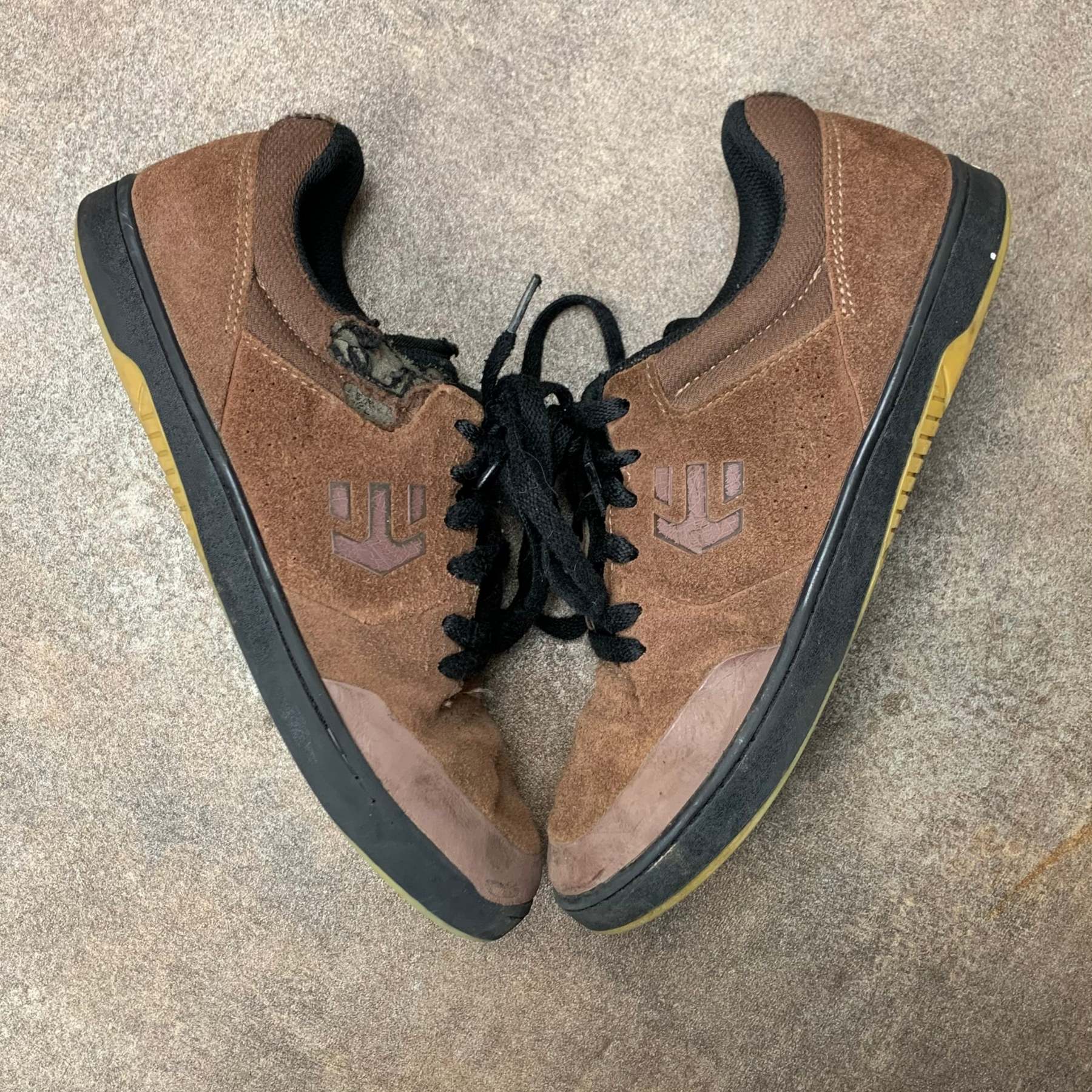 Etnies trainers in brown / black with fair wear as shown / replacement insoles.