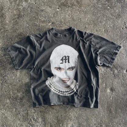 Casual Basic Mask Girl Print Short Sleeve T-Shirt