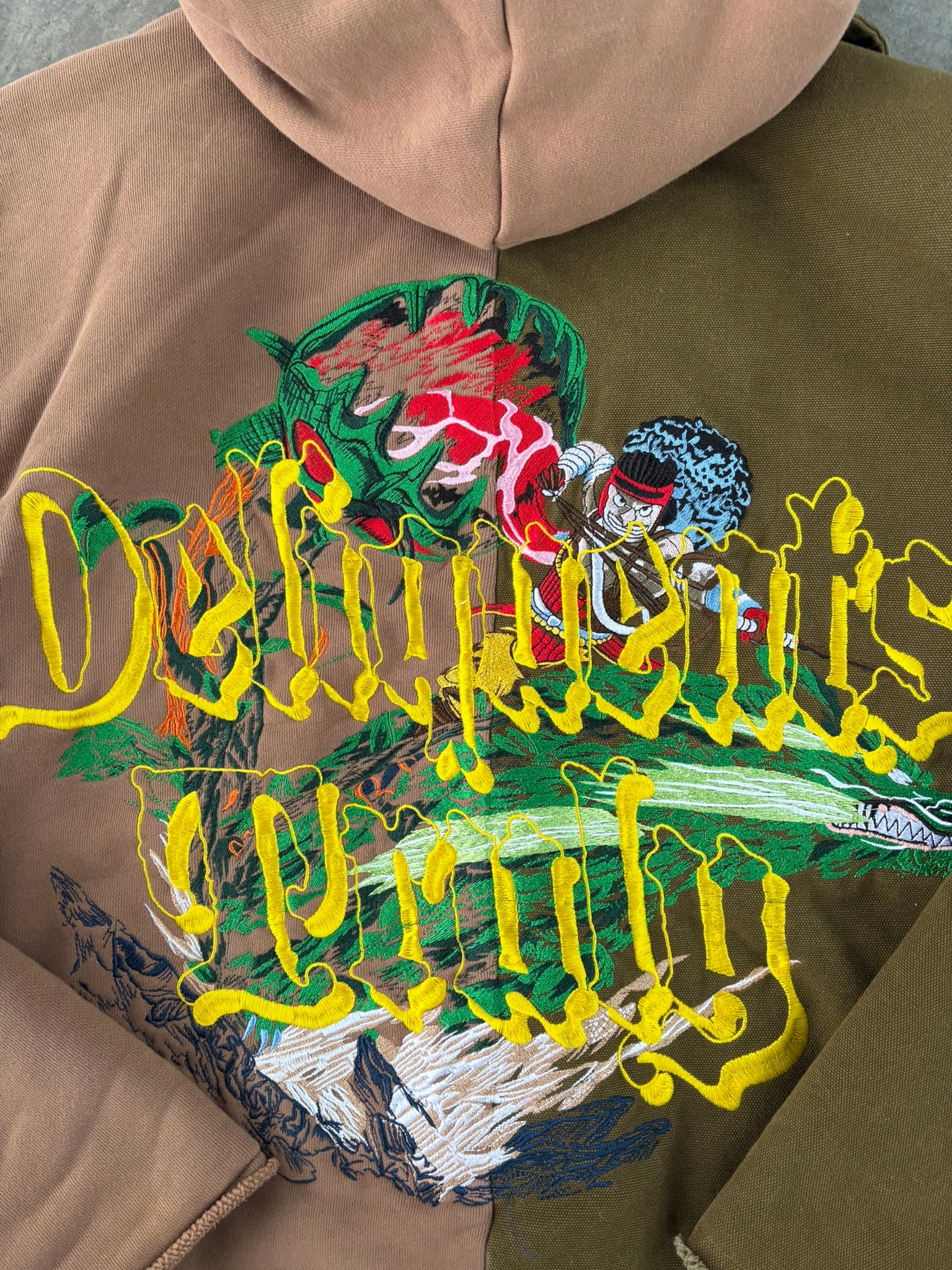 Unleash your inner warrior with this Soge King jacket in earthy tones and a bold split colorway. Featuring shades of green and brown, this piece pays homage to the legendary sniper. Fully embroidered and expertly designed, it's a true statement piece for Usopp fans everywhere.