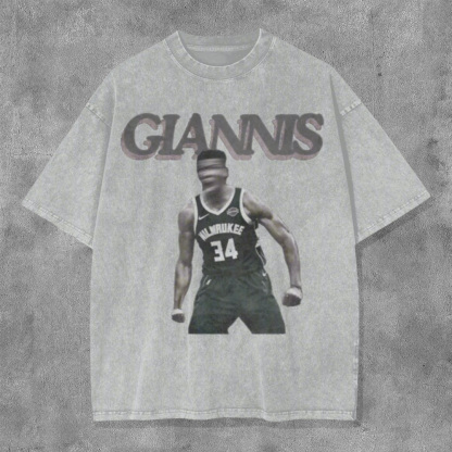Giannis Washed Distressed Short Sleeve T-Shirt