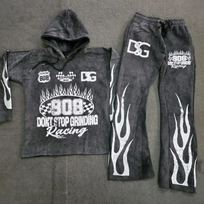 Flame Casual Hoodie Pants Two-Piece Set