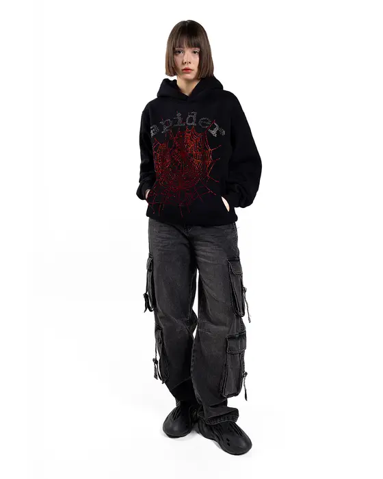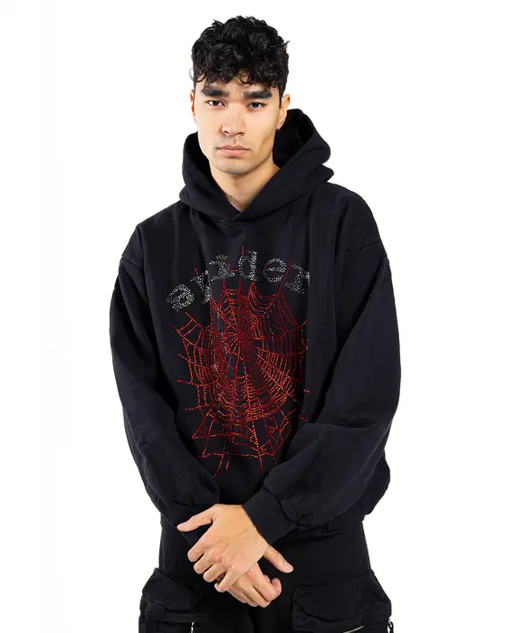 Sp5der OG Rhinestone Logo Hoodie Black