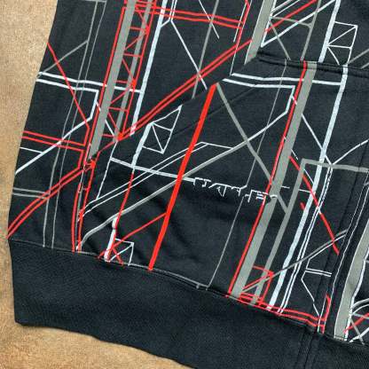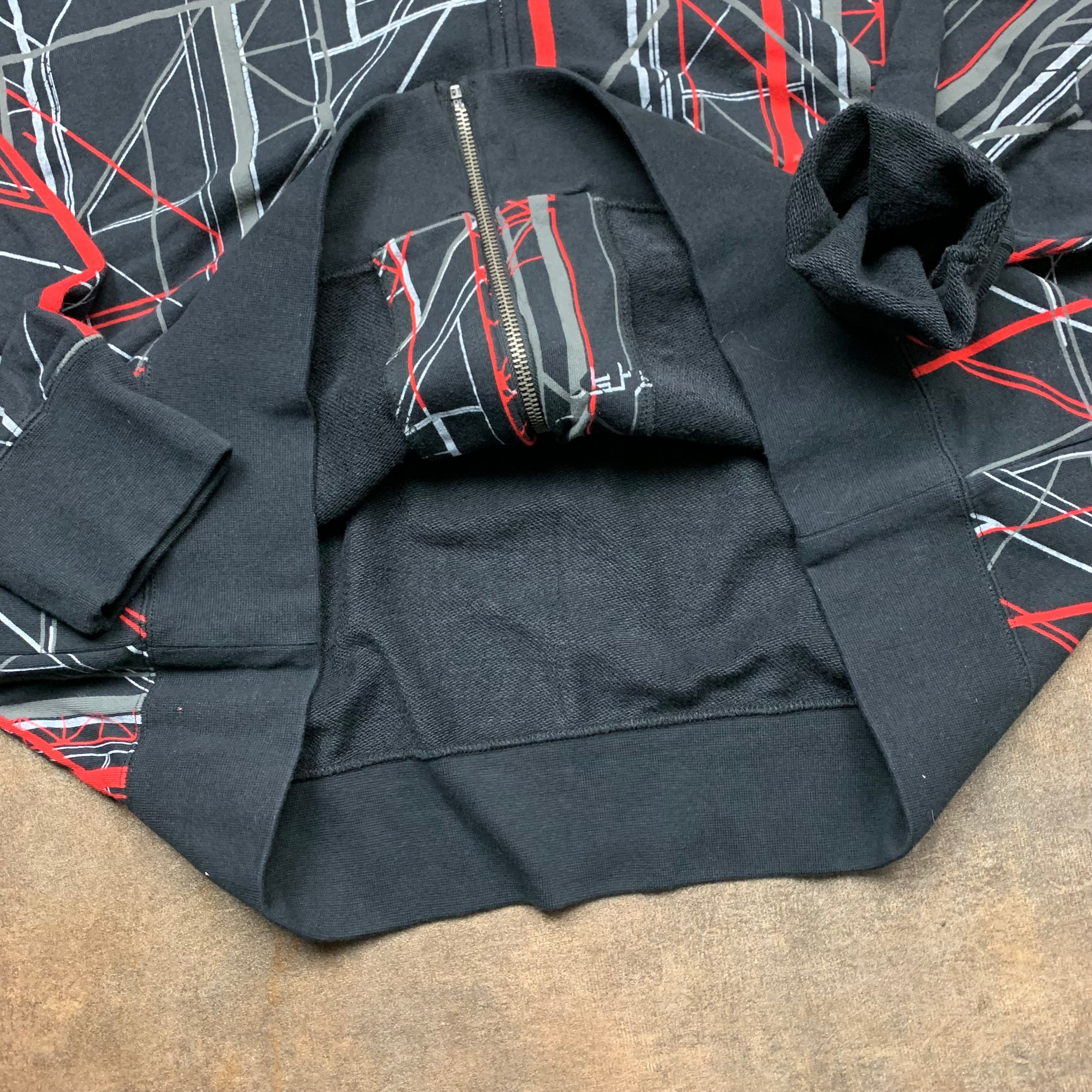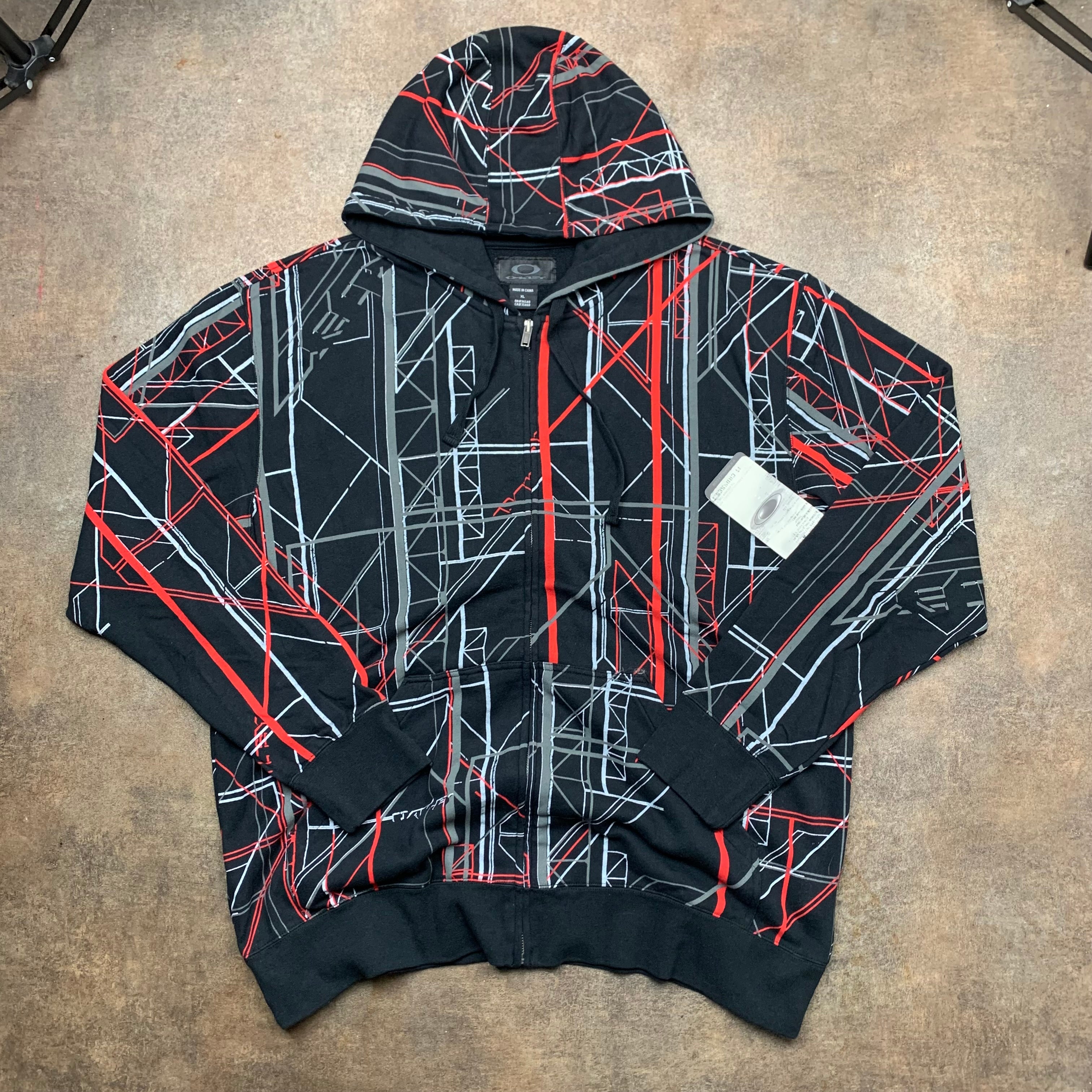 Vintage Oakley hoodie with a black, red and grey tron style graphic all over with spell out logos detailed into the pattern, boxy fit and brand new with tags.