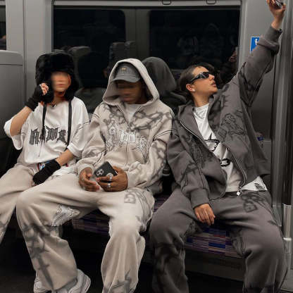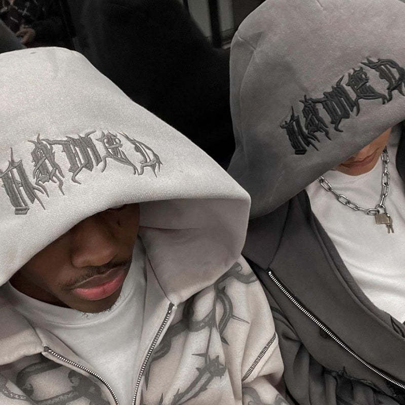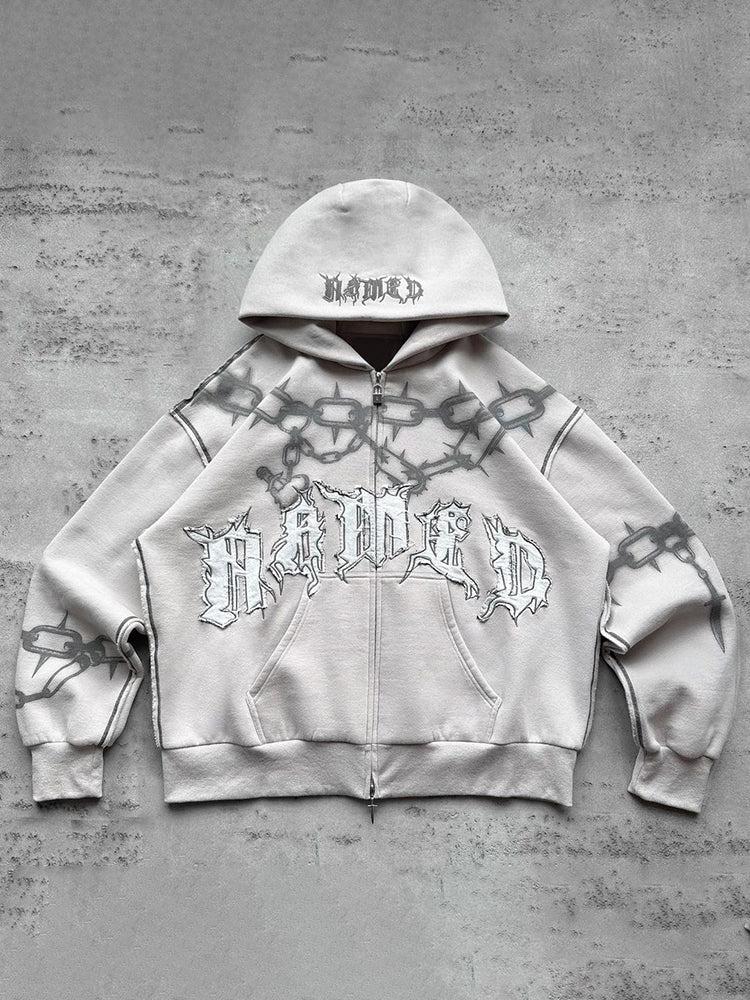 High Street Letter Patch Print Zipper Mask Hood Hoodie