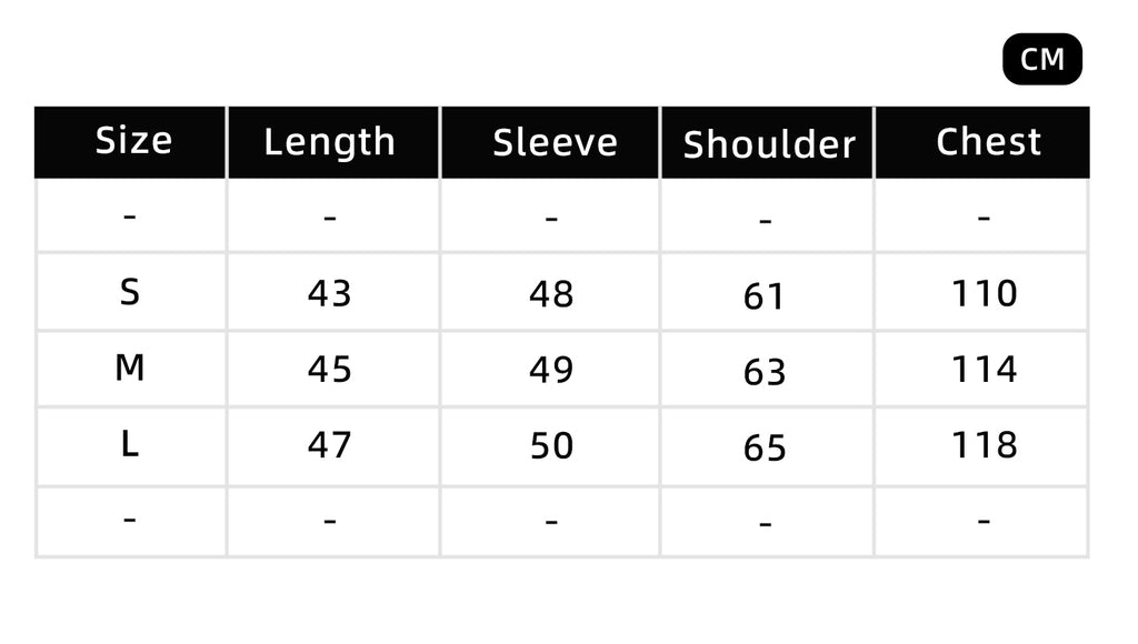 Size/cm Length  Chest Shoulder Sleeve Length