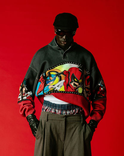 An iconic classic brought into a beautiful sweater. Fully printed with an embroidered finish. Rock it's iconic colorway and color panels with this sweater.