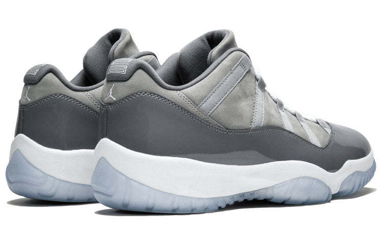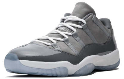 Transformed from High Top to Low Top, the Nike Air Jordan 11 Retro "Cool Grey" features a suede upper and is accented by medium grey patent leather overlays. White laces, an equally white midsole and a semi-translucent outsole complete the aesthetic.