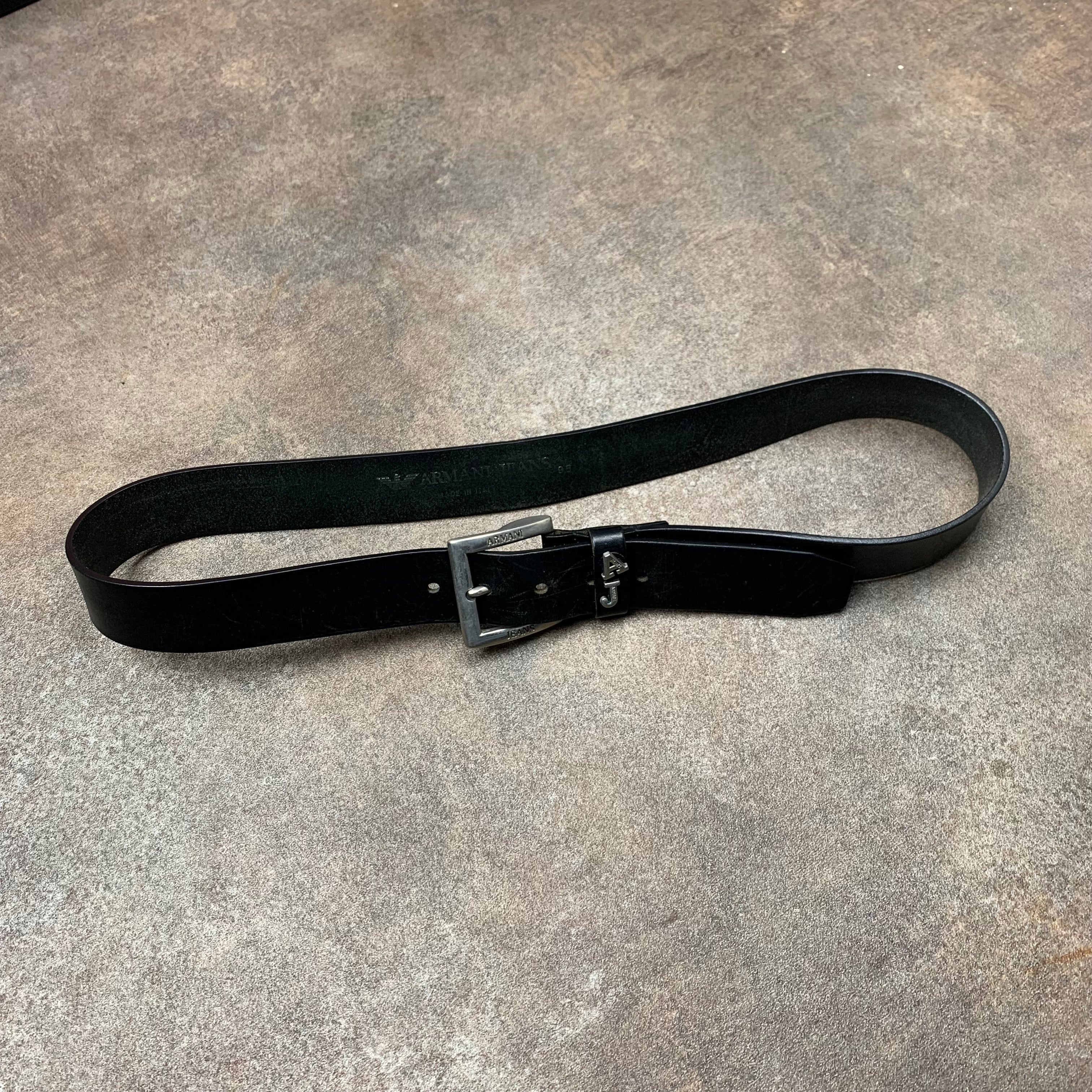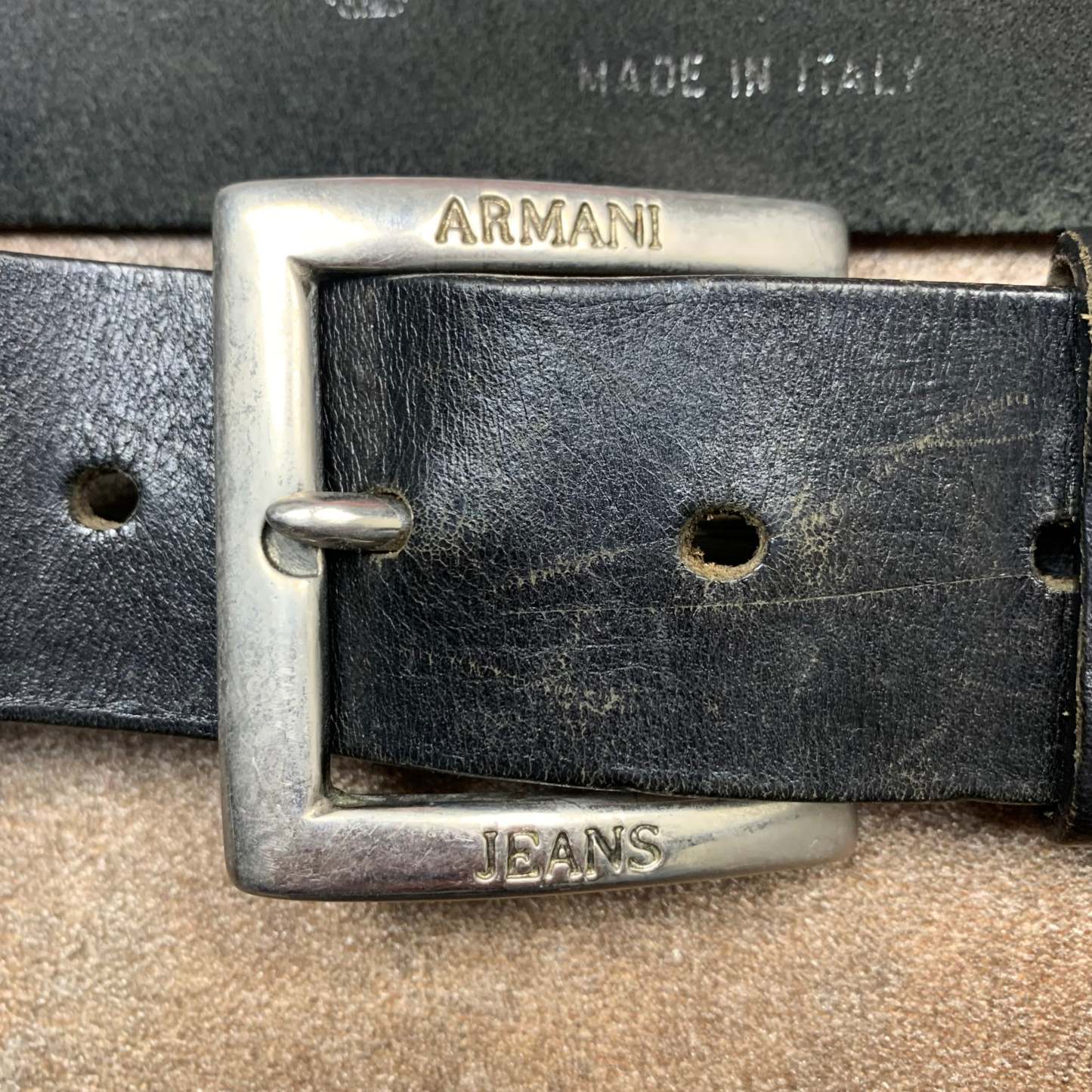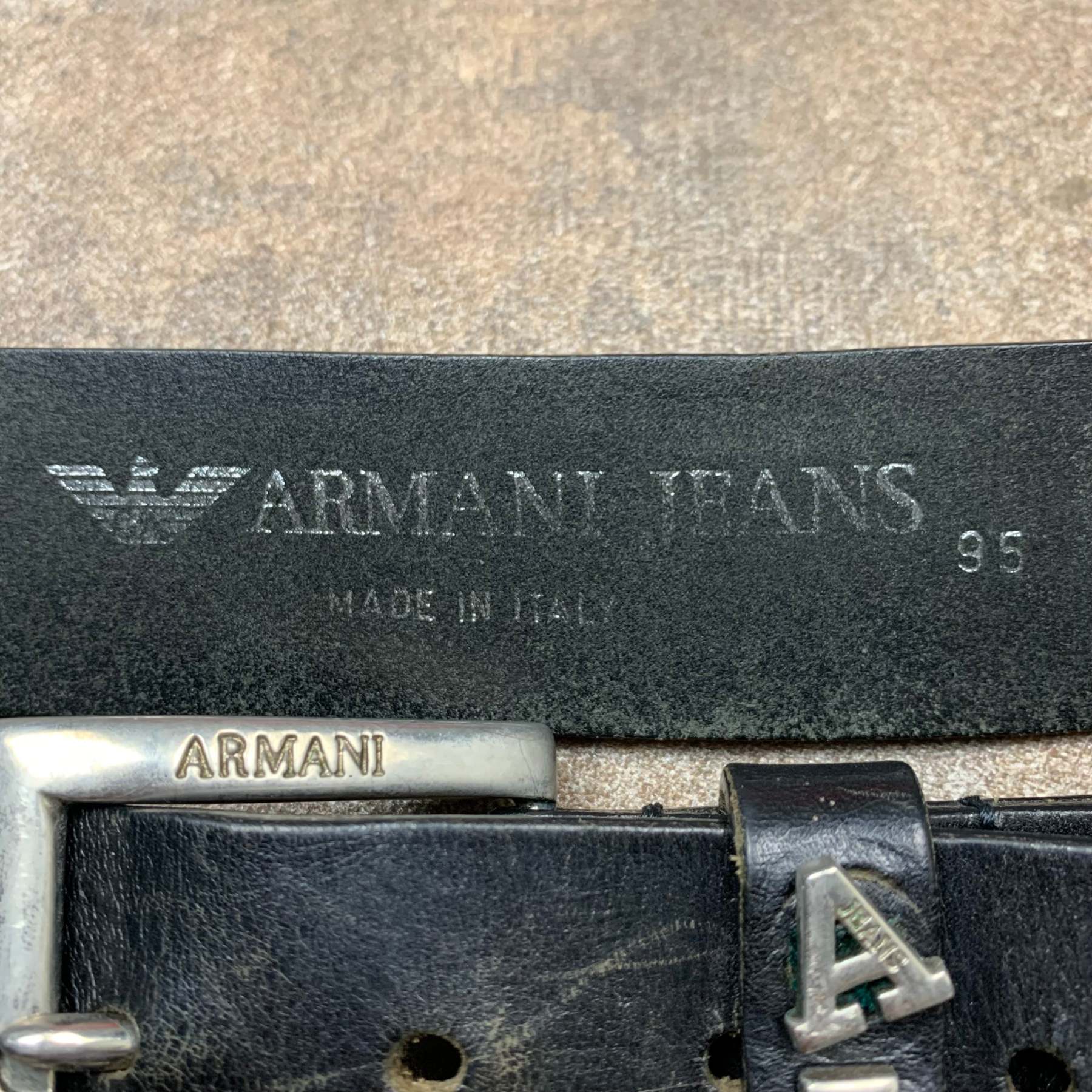 Rare Armani belt with AJ detailing on the belt loop, spellouts on the buckle, coloured black all over and in excellent second hand condition with some marks around the holes as shown / rust from age as shown, virtually unnoticeable when worn.