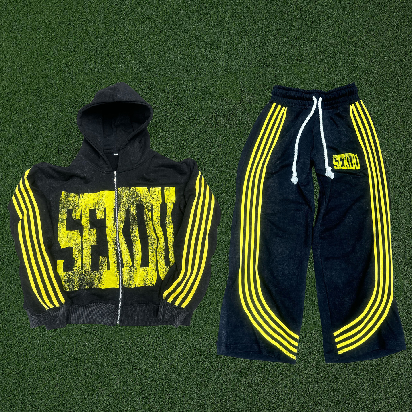 Casual Street Zip Hoodie Pants Two-Piece Set