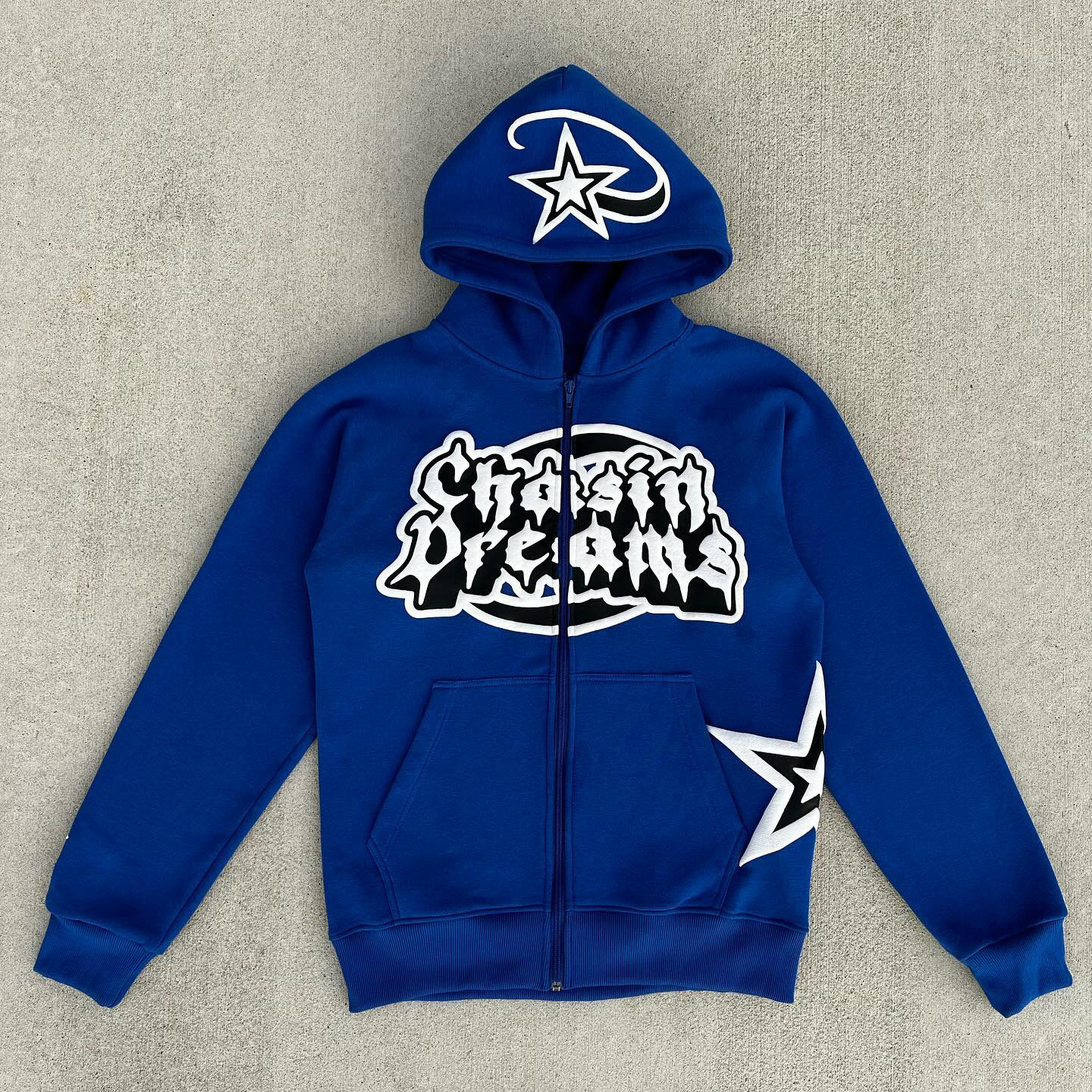 Chasin Dreams Print Long Sleeve Zipper Hoodies