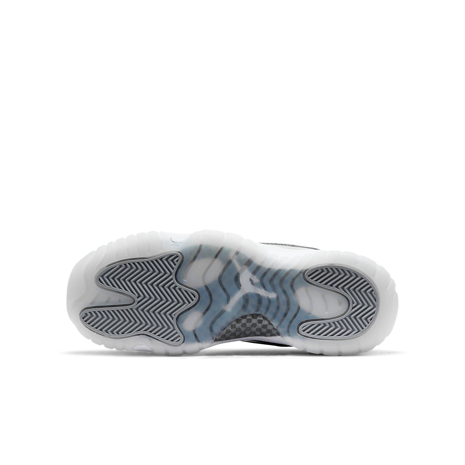 The Air Jordan 11 Retro GS is a grade school variant of the iconic Air Jordan 11 'Jubilee'. To celebrate the 25th anniversary of this classic silhouette, the shoe features a monochrome black finish throughout the upper, constructed from ballistic mesh and patent leather. 3D metallic Jumpman and matching '23' branding decorate the heel, while 'Jordan' is spelled out in Silver lettering on each of the sneaker's eyelets. The mid-top rides on a classic white foam midsole, supported by a translucent rubber outsole. This shoe is sure to be a hit with sneakerheads and Jordan fans alike - so don't miss your chance to cop!