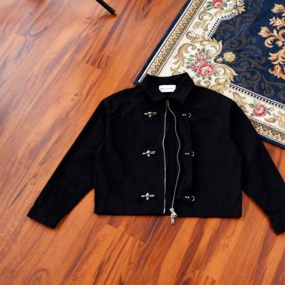 - Bold and refined with a modern edge, the Lock and Zip Cropped Jacket reinvents classic tailoring through rebellious details. Featuring a cropped silhouette that hits perfectly at the waist, this piece balances sleek minimalism with rugged industrial accents.