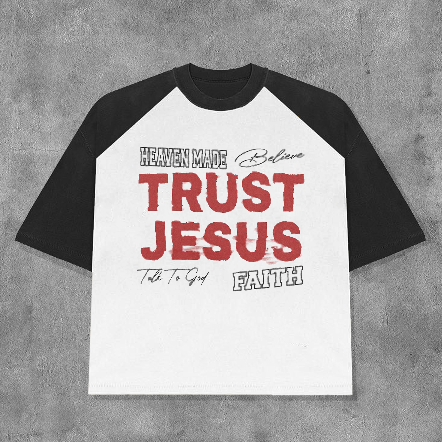 Trust Jesus Contrast Color Print Short Sleeve T-Shirt