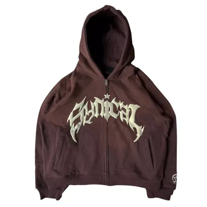 Men's Heavy Sweatshirts Men's Retro Zipper Fashion Personality Letter Star Print
