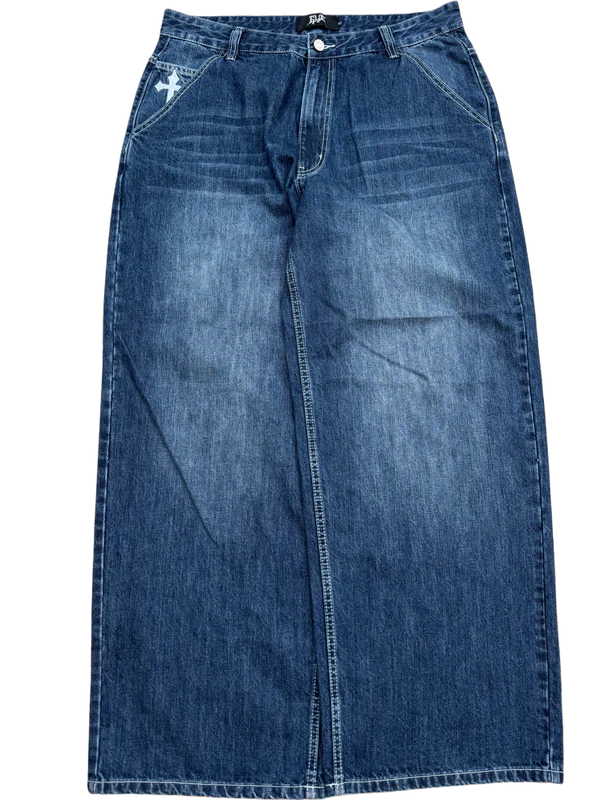 Light Wash Faded Skull Cross GLOE Jeans