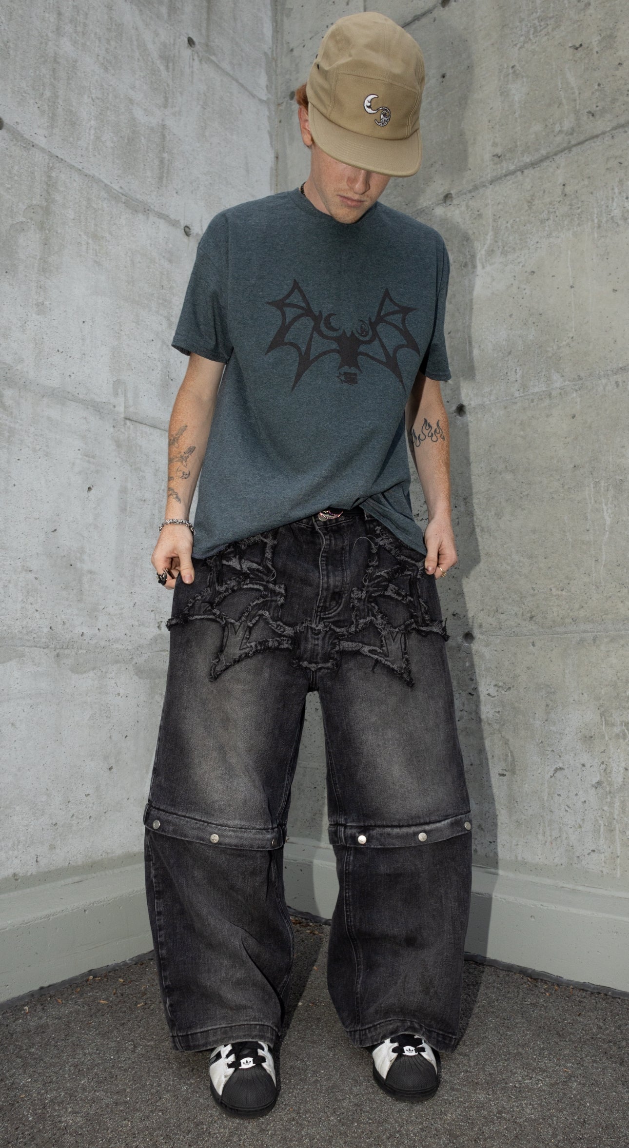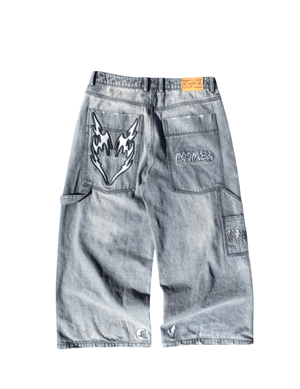 GREY LOVELESS DOUBLE KNEES CARPENTER WIDE-LEG DENIMS.