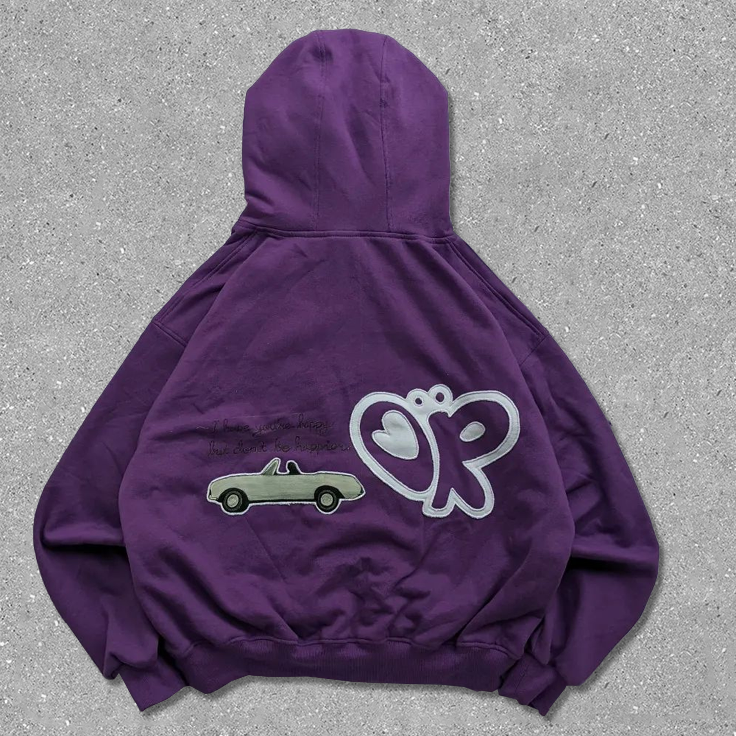 Peace Print Long Sleeve Applique Embroidered Hoodies