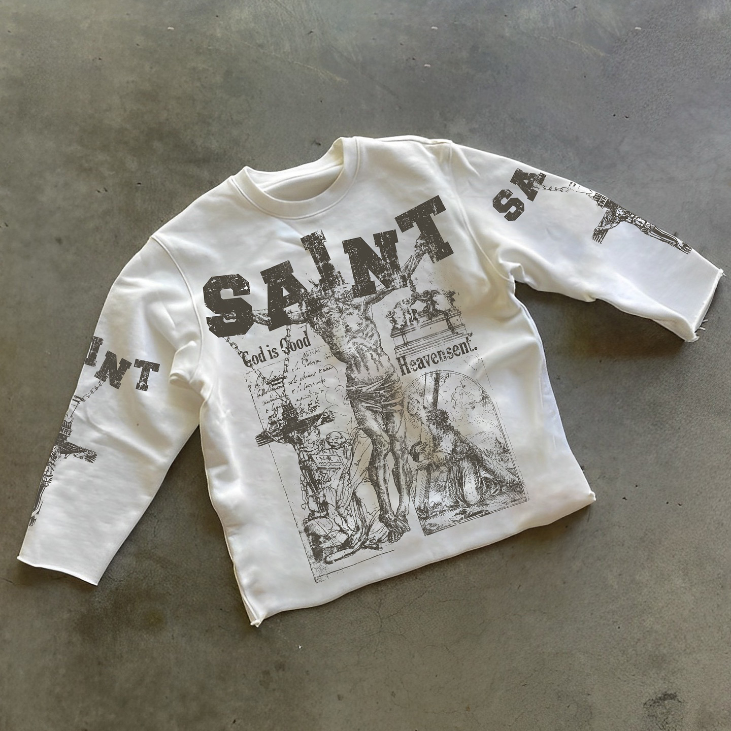 Cross Print Vintage Faith Long Sleeve Hoodie