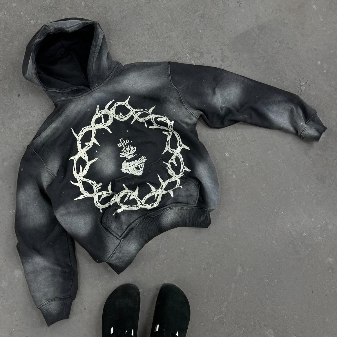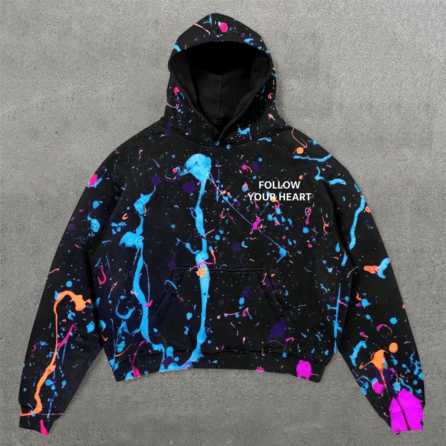 Ink-Splash Letters Print Long Sleeve Hoodies