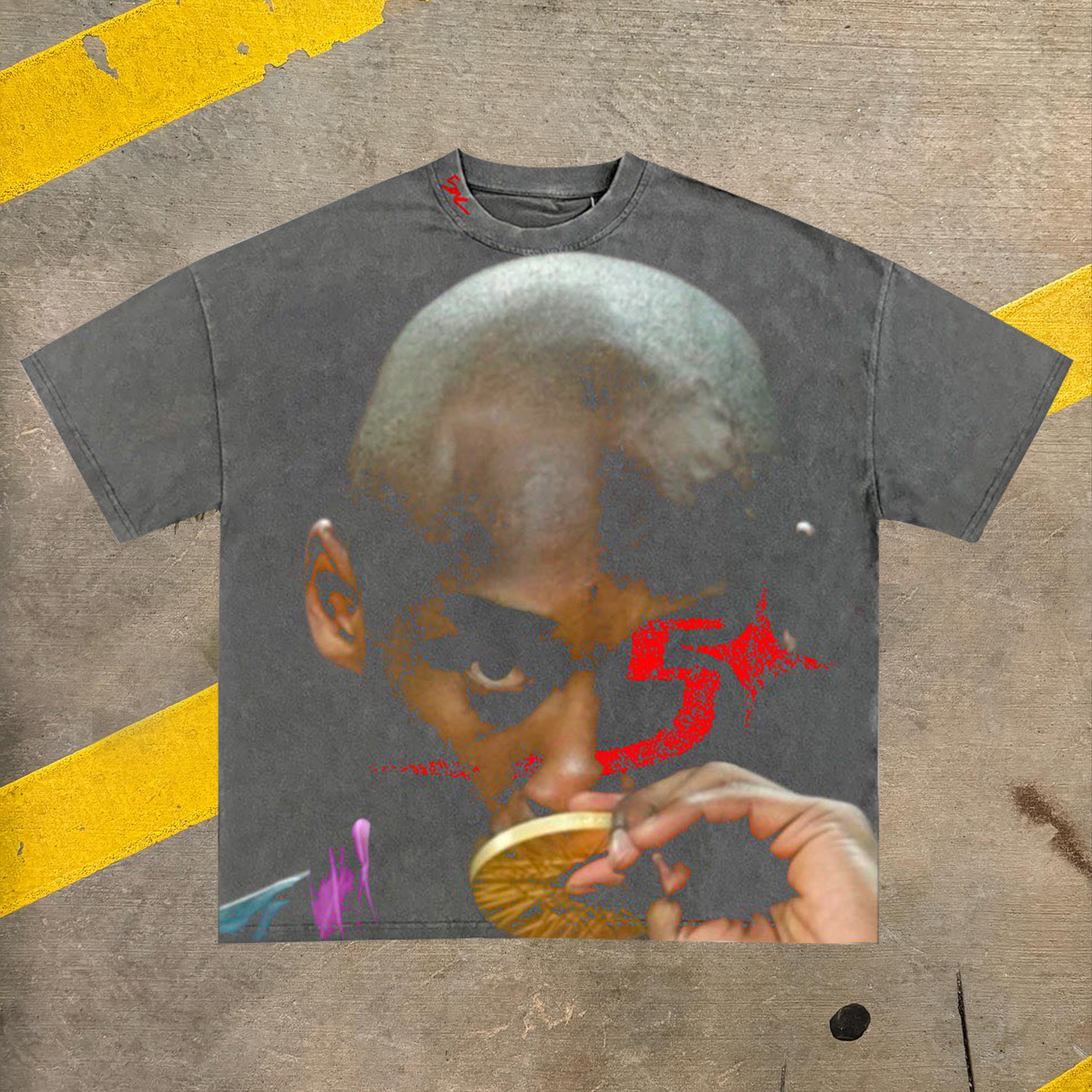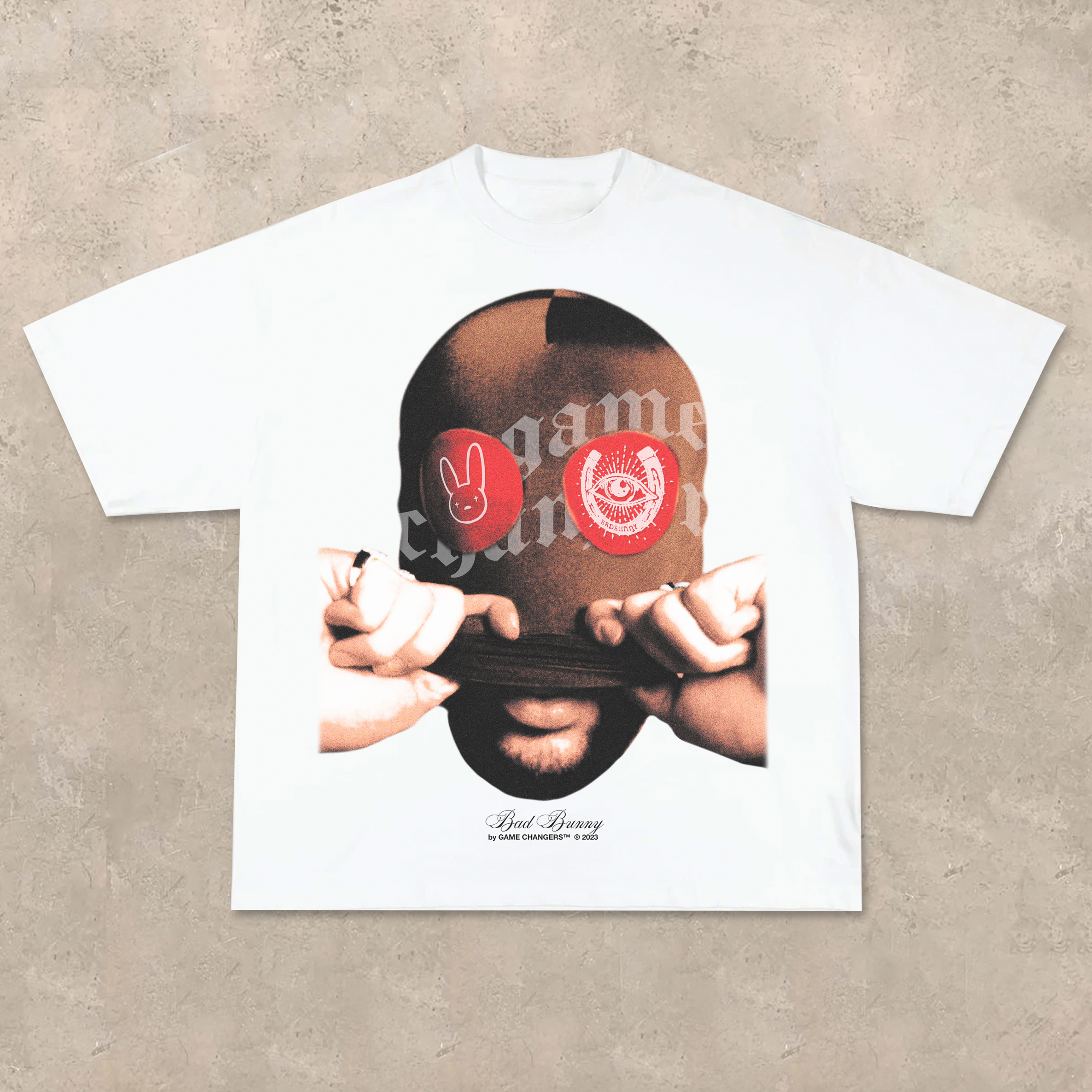 Big face rap star Bad Bunny printed T-shirt