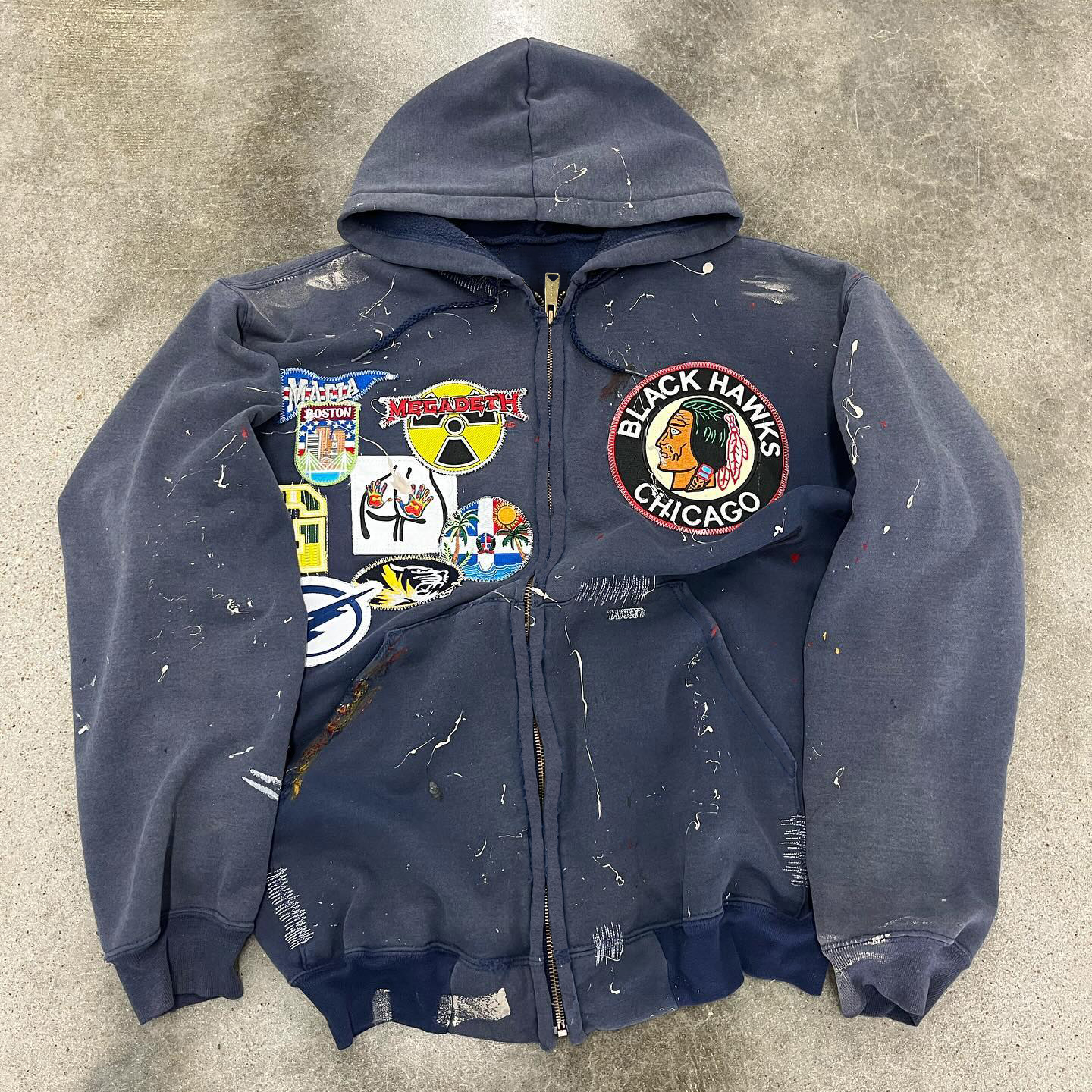 Stitching Color Print Long Sleeve Zipper Hoodies