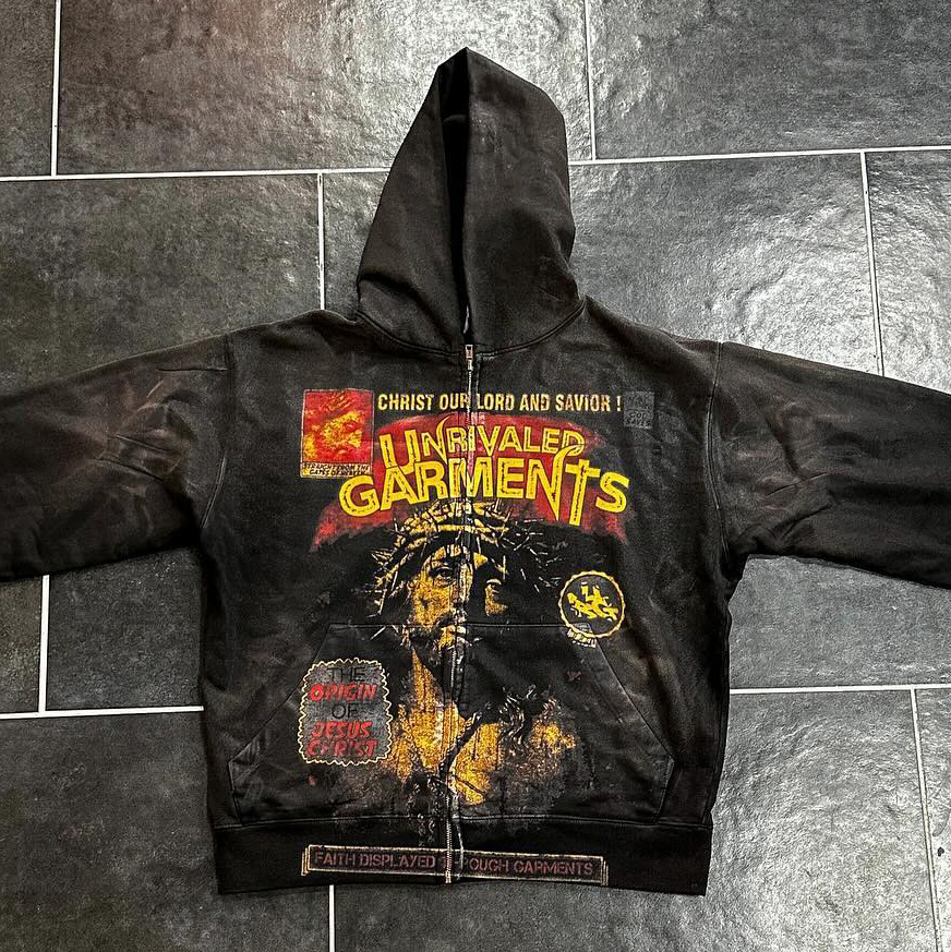 Jesus Multi-element Print Long Sleeve Zipper Hoodies