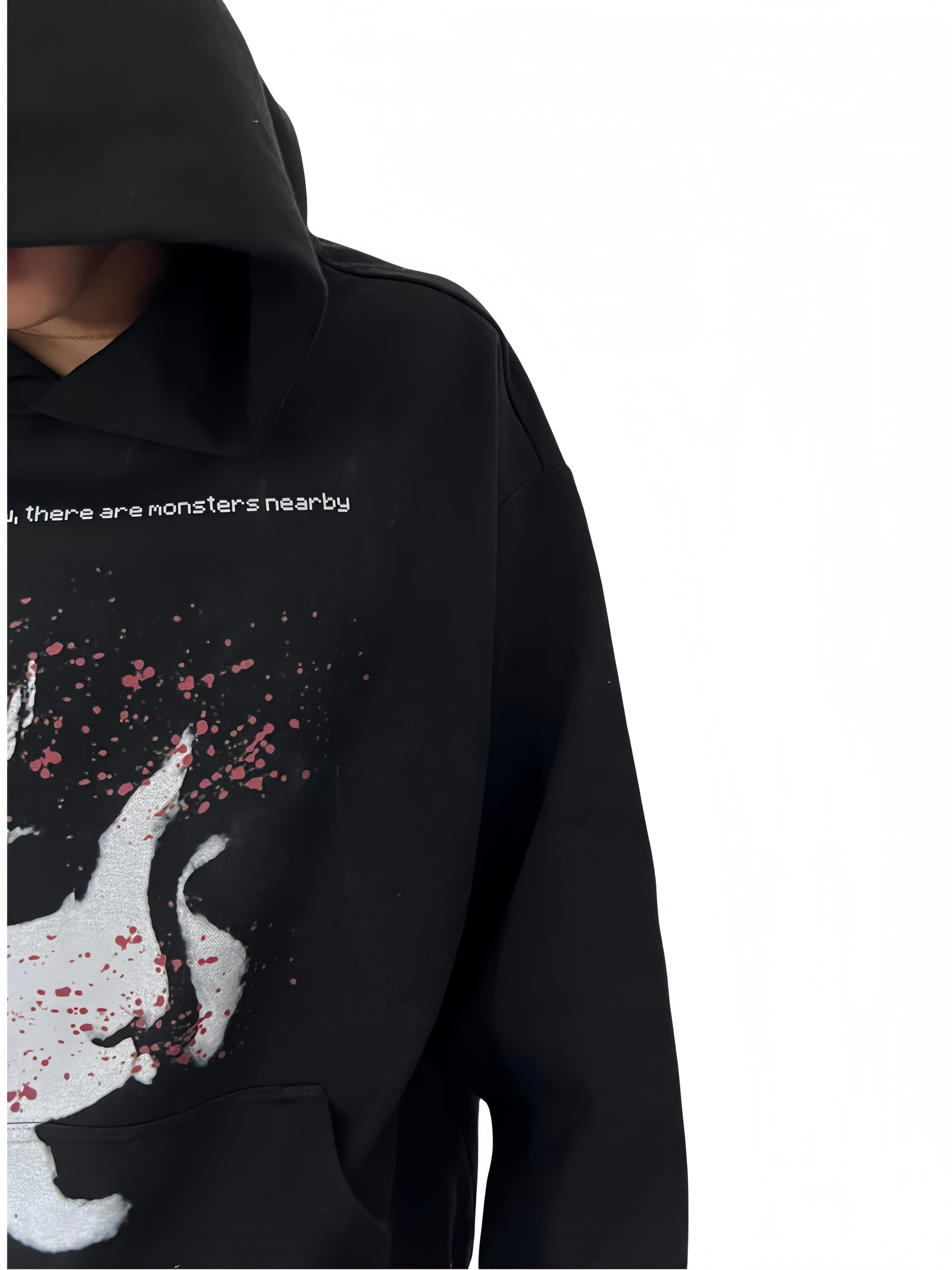 • Design: Eye-catching graphic print with a mysterious face and splatter effect.