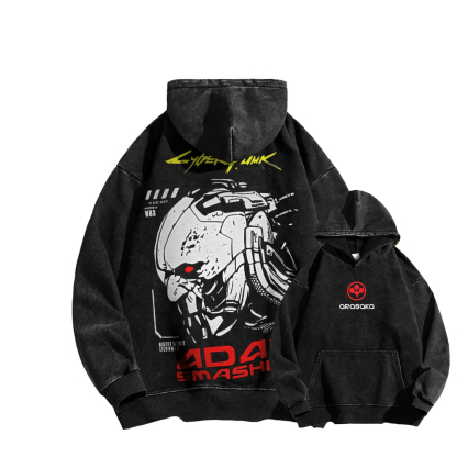 Cyberpunk Casual Washed Hoodie 2508010861