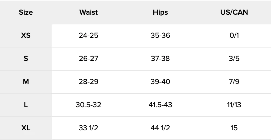 SIZE CHART
