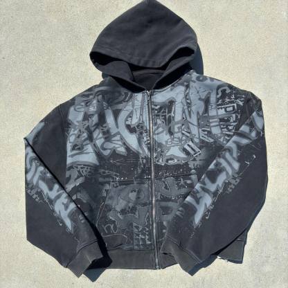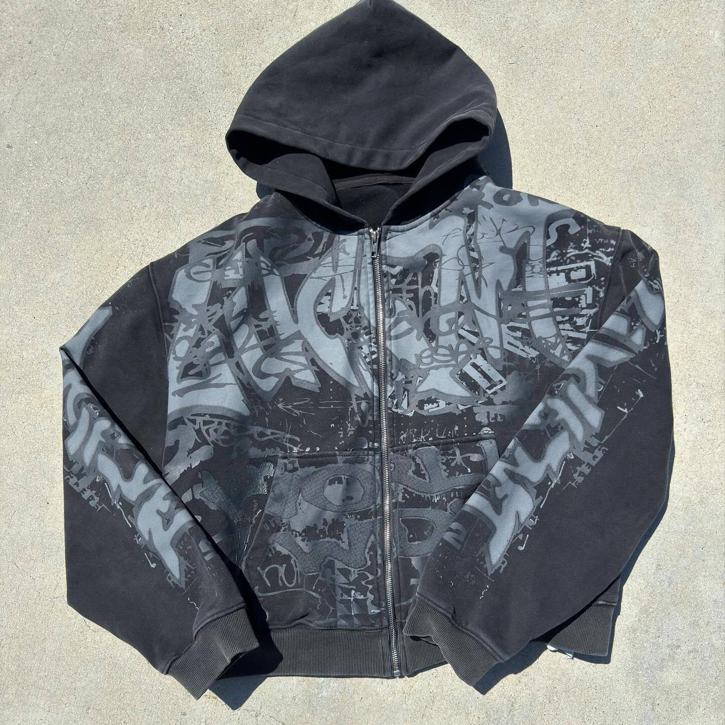 Graffiti Zip-Up Hoodie and Pants Two-Piece Set