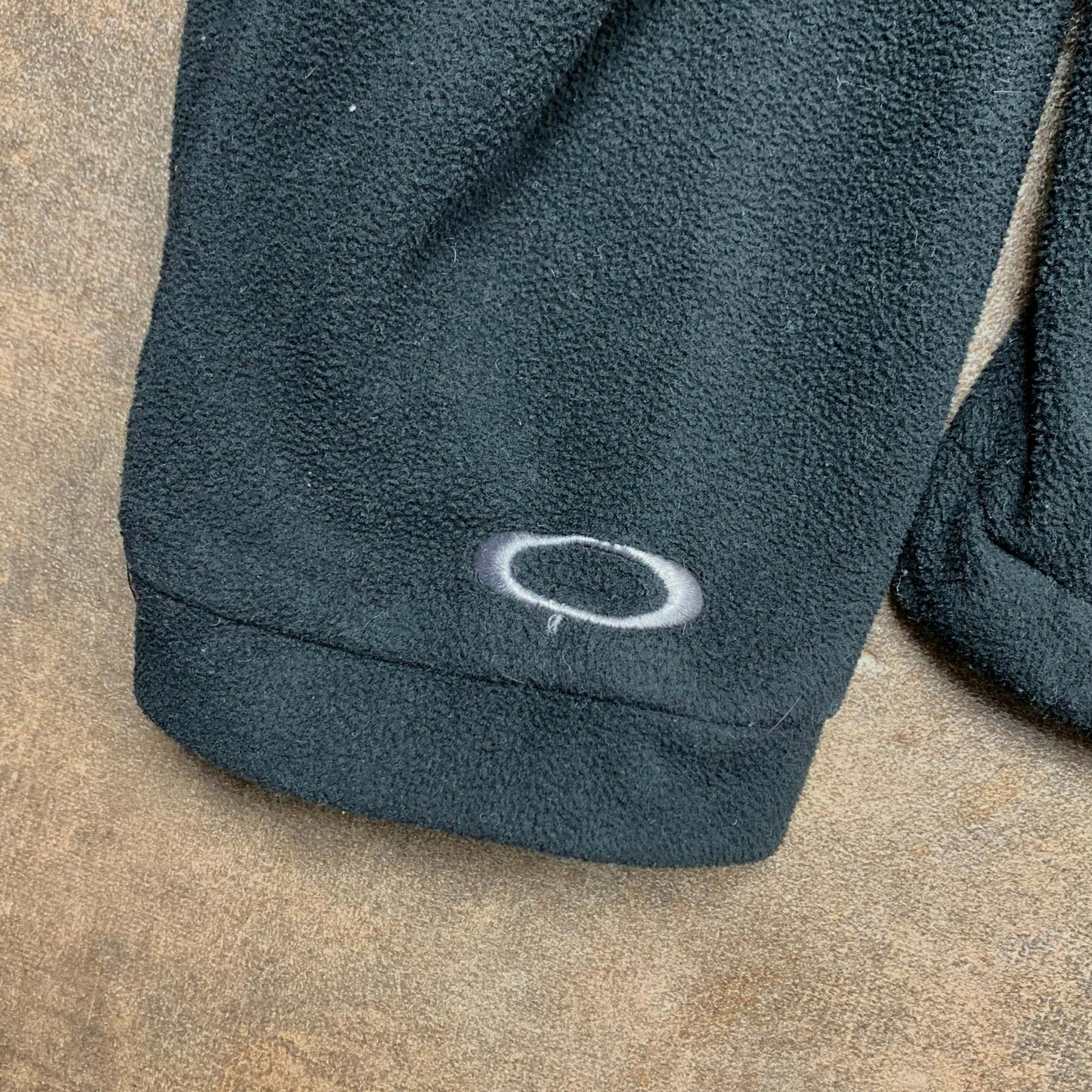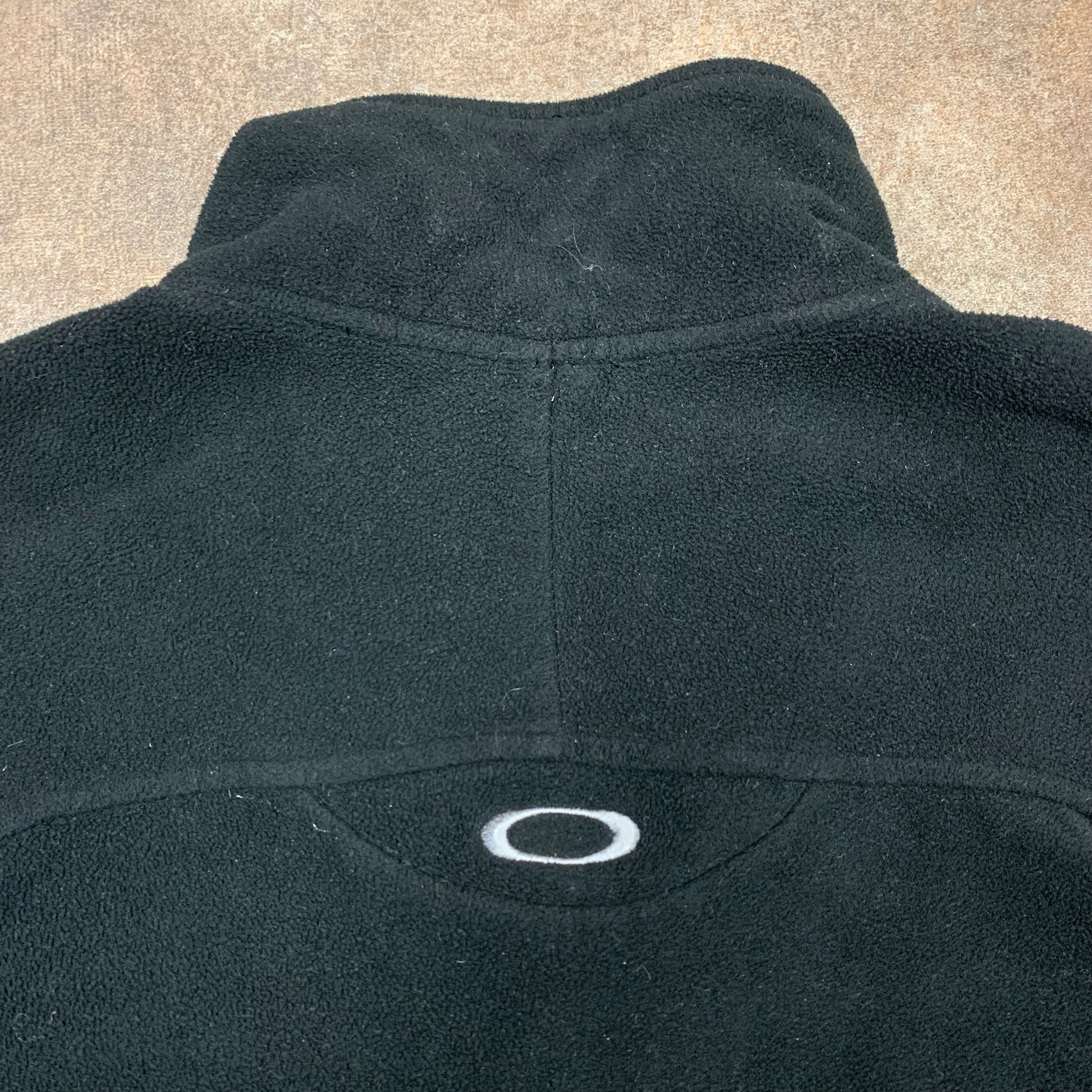 Rare vintage Oakley fleece with grey O logos on the front, right sleeve and the top of the back, coloured black all over, logo detailed zips / waist cinches and in excellent second hand condition with minimal wear.