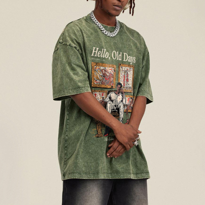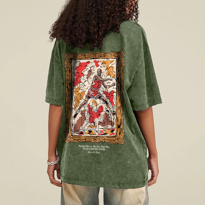 Old Times Casual Street Retro Washed Basketball T-Shirt