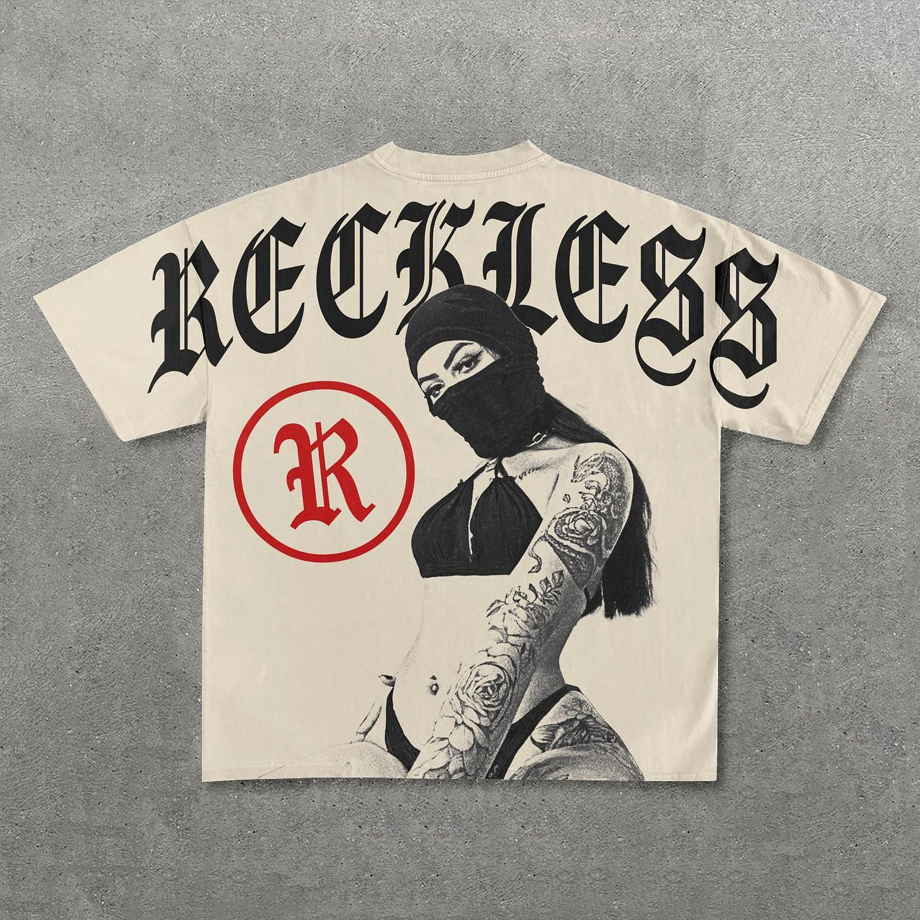 Reckless Mask Girl Print Short Sleeve T-Shirt
