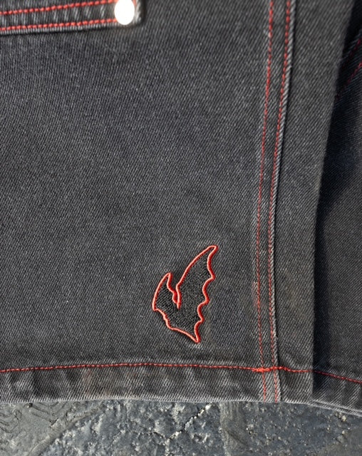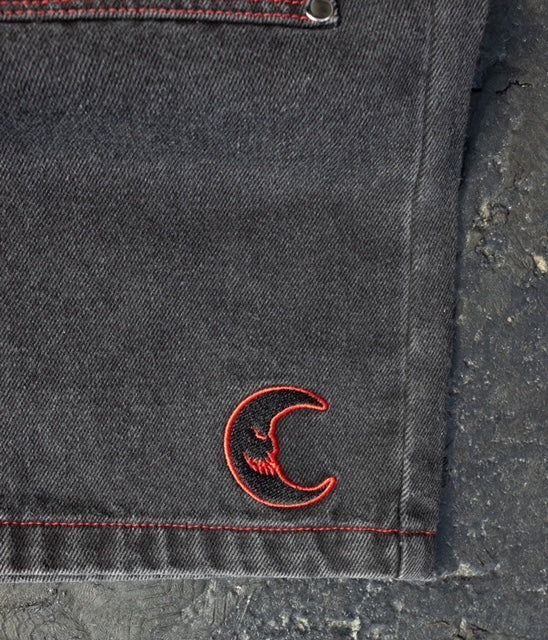 RED LOVELESS DOUBLE KNEES CARPENTER WIDE-LEG DENIMS.