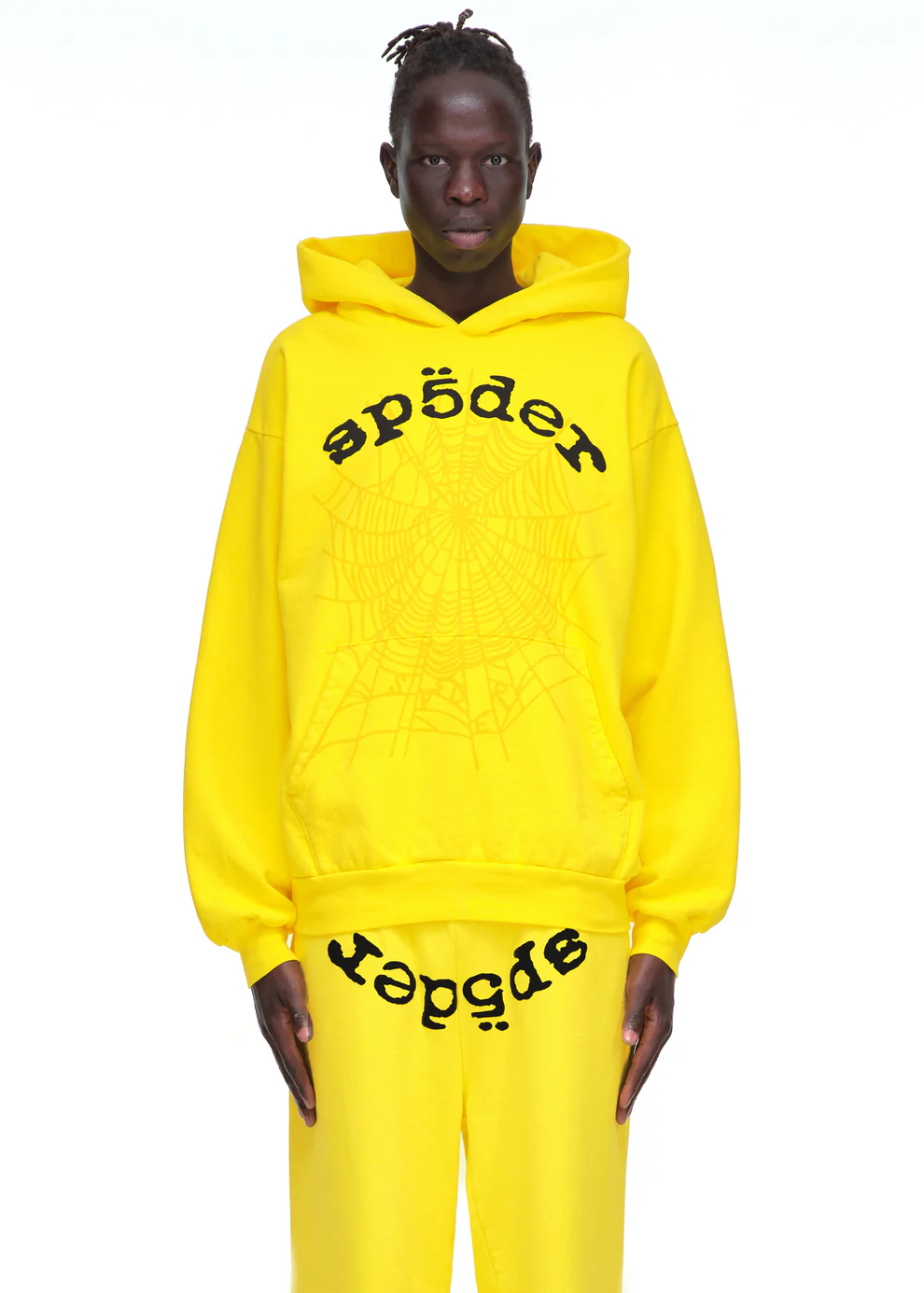 In November of 2021, Young Thug��s Sp5der brand presented the Sp5der Worldwide Orange Angel Number 555 Hoodie, accompanied by a coordinated pair of sweatpants.