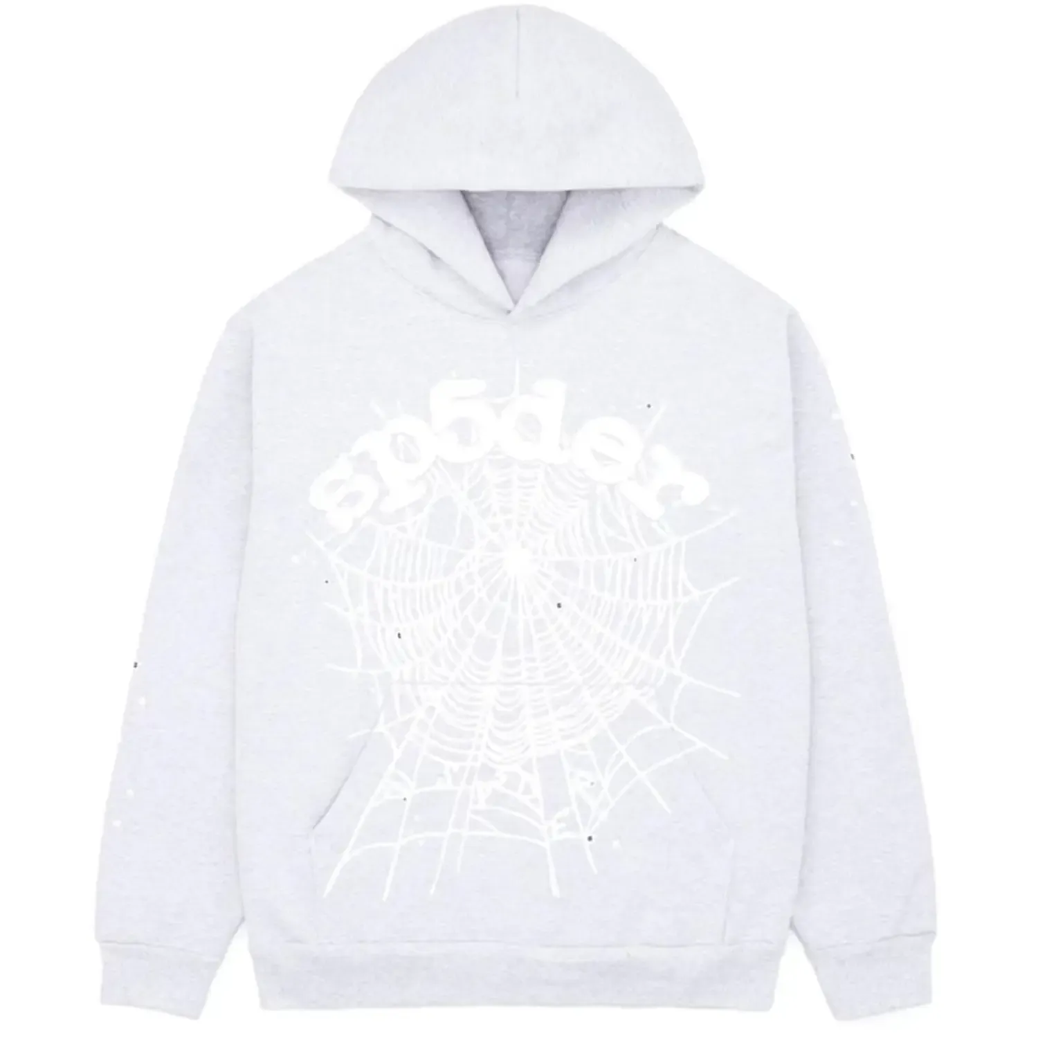 This distinctively eye-catching hoodie showcases a dazzling spider web logo adorned with a prominent ��555 555�� graphic thoughtfully layered atop it. The sweatshirt��s hood also boldly displays the Sp5der logo, adding to its striking and bold design.