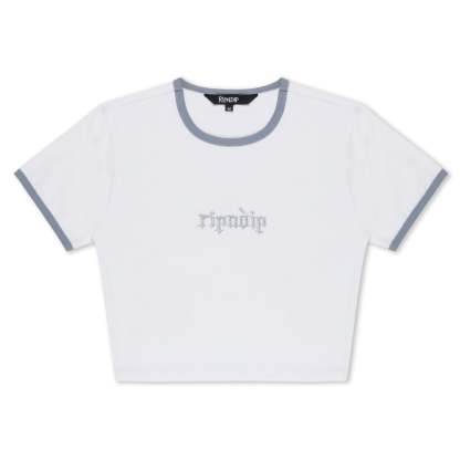 Los Feliz Cropped Ringer Tee (White/Grey)